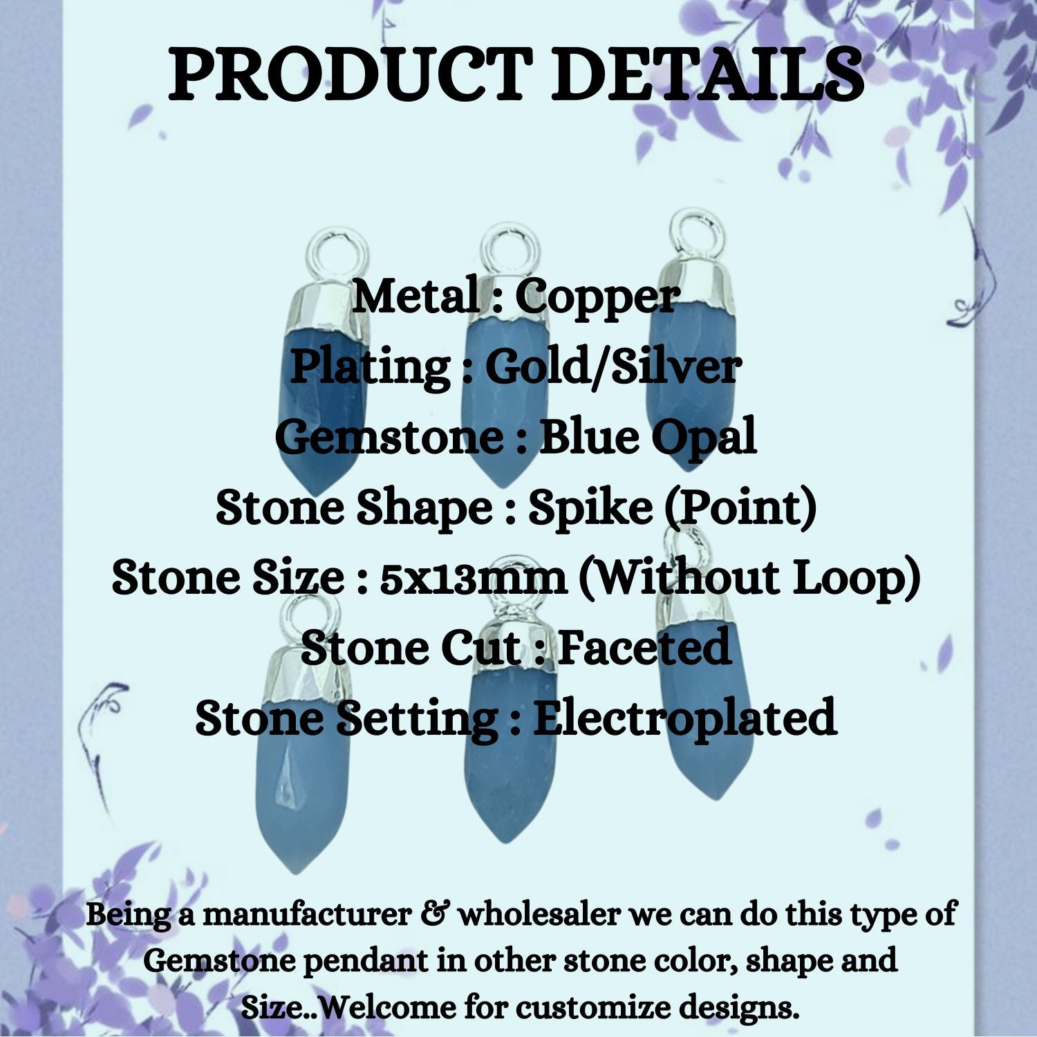 Blue Opal Spike Point Pendant Gold/Silver Electroplated Crystal for Handmade Designs- Selling Per Piece