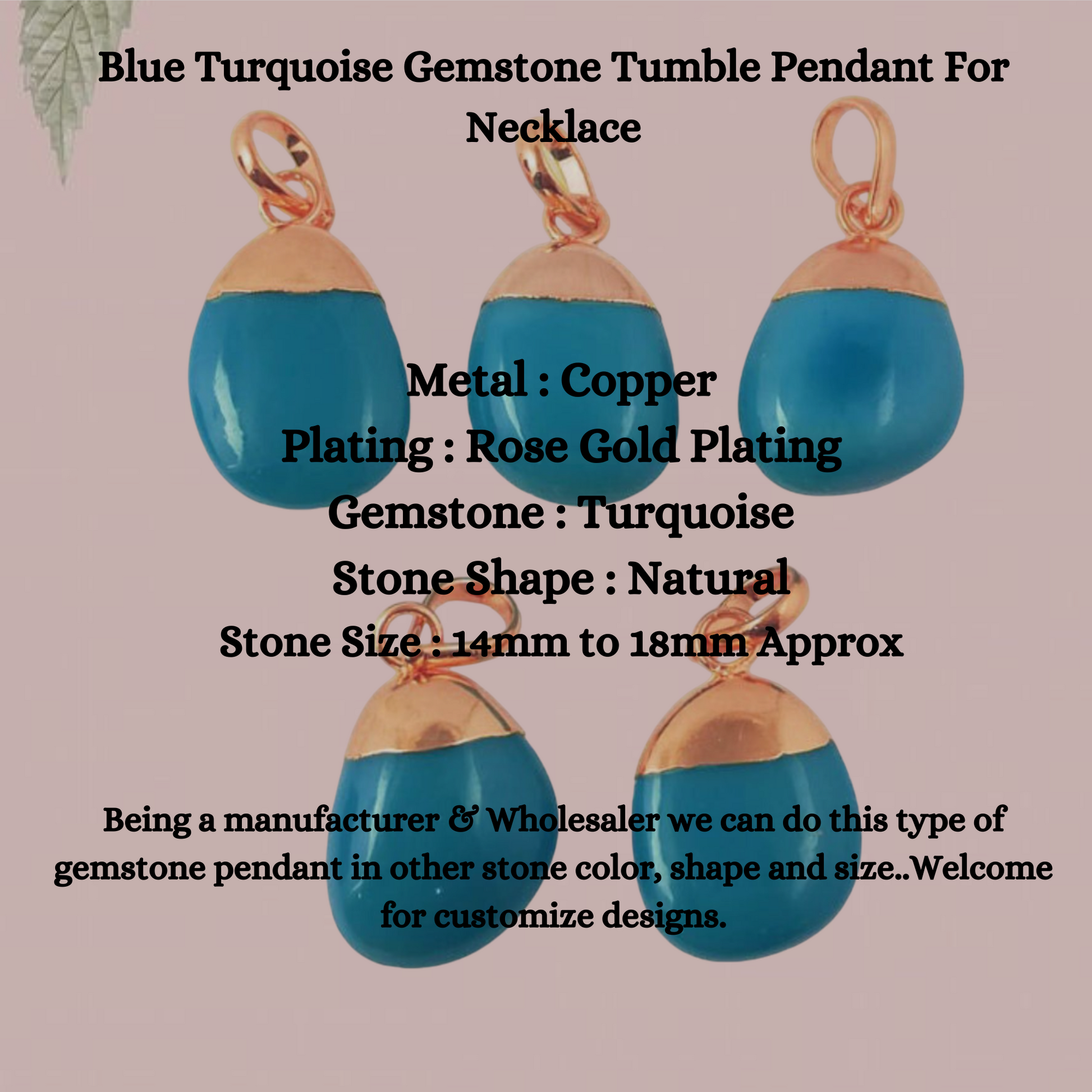 Being a manufacturer we can do this type of gemstone pendant in other stone color, shape and size.. Welcome for customize designs.