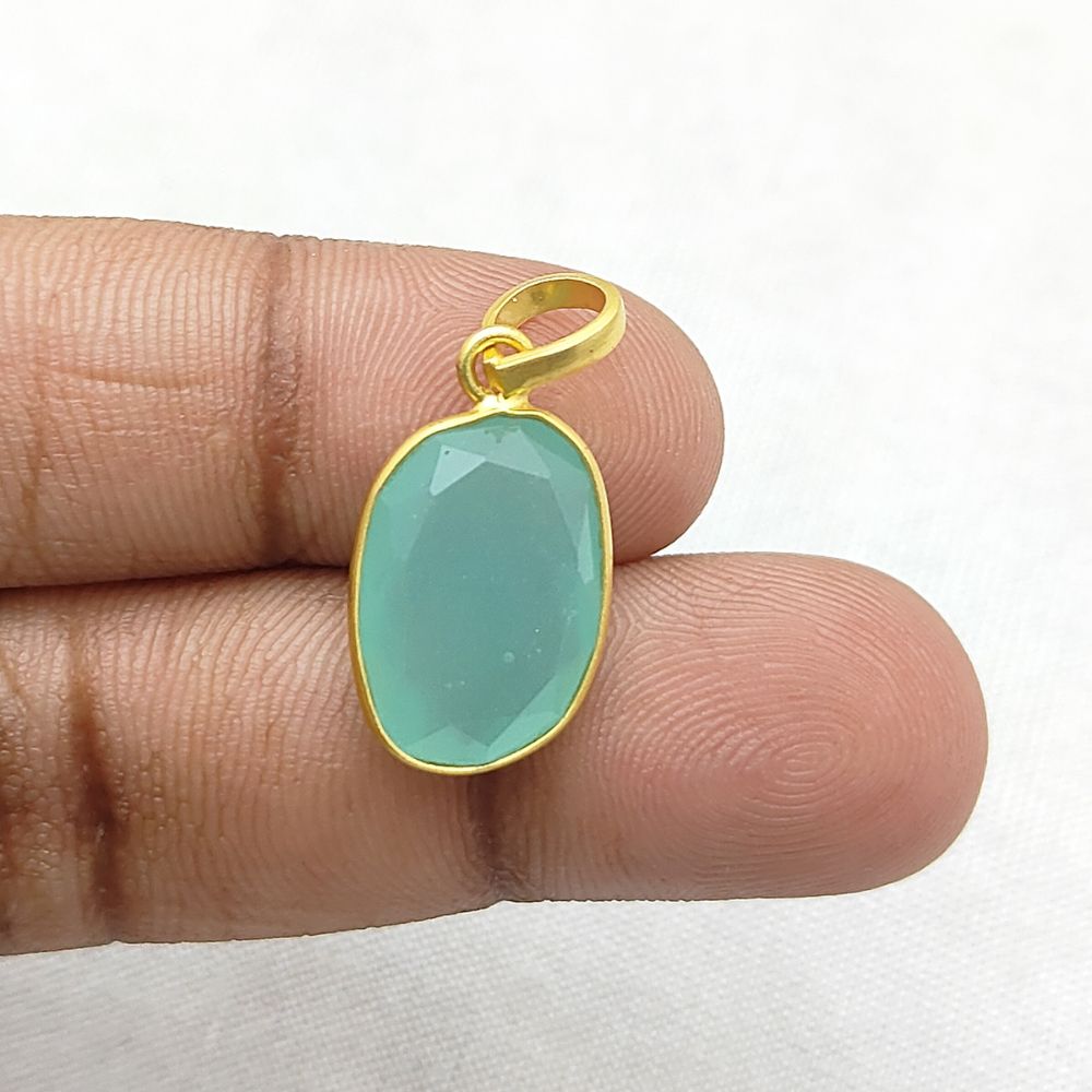 Boho Aqua Chalcedony Pendant Uneven Semi-Precious Stone Handmade Gold/Silver Plated Charms