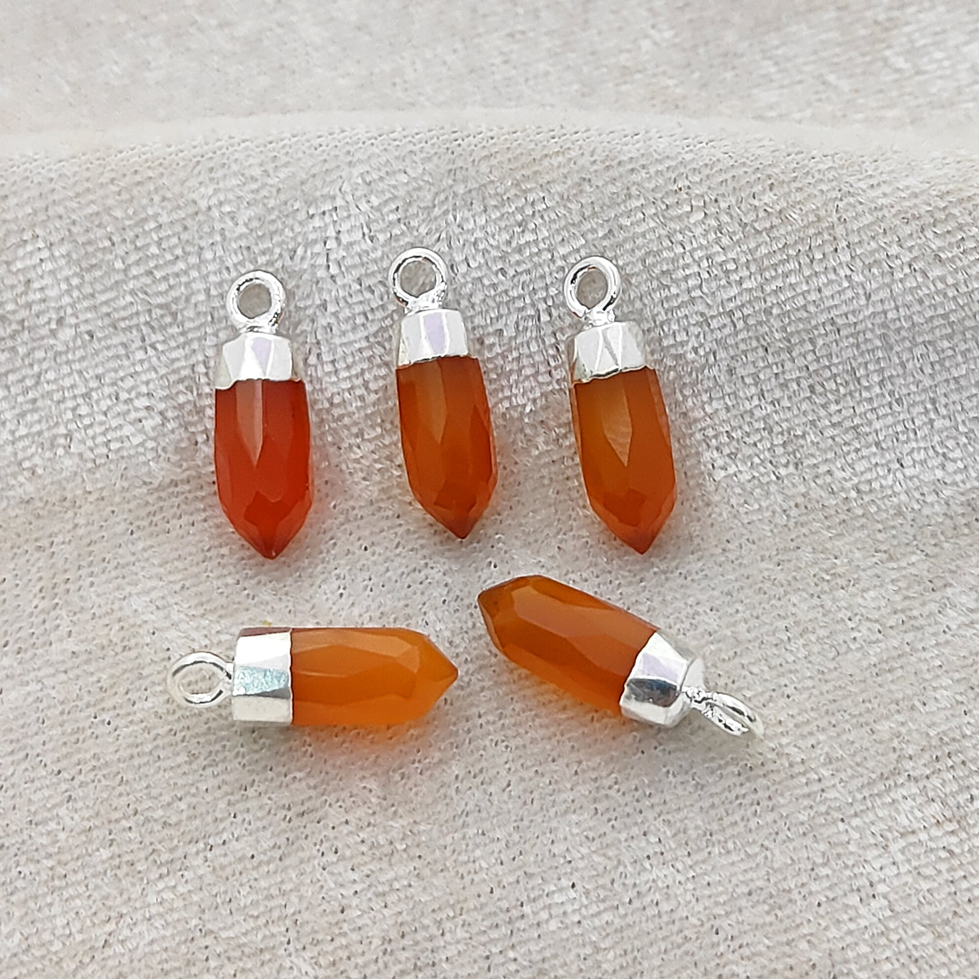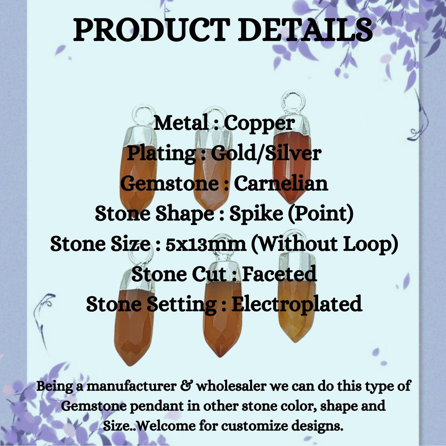 Boho Carnelian Spike Pendant Natural Gemstone Charm in Gold/Silver Electroplated Cap for DIY Crafts- Selling Per Piece