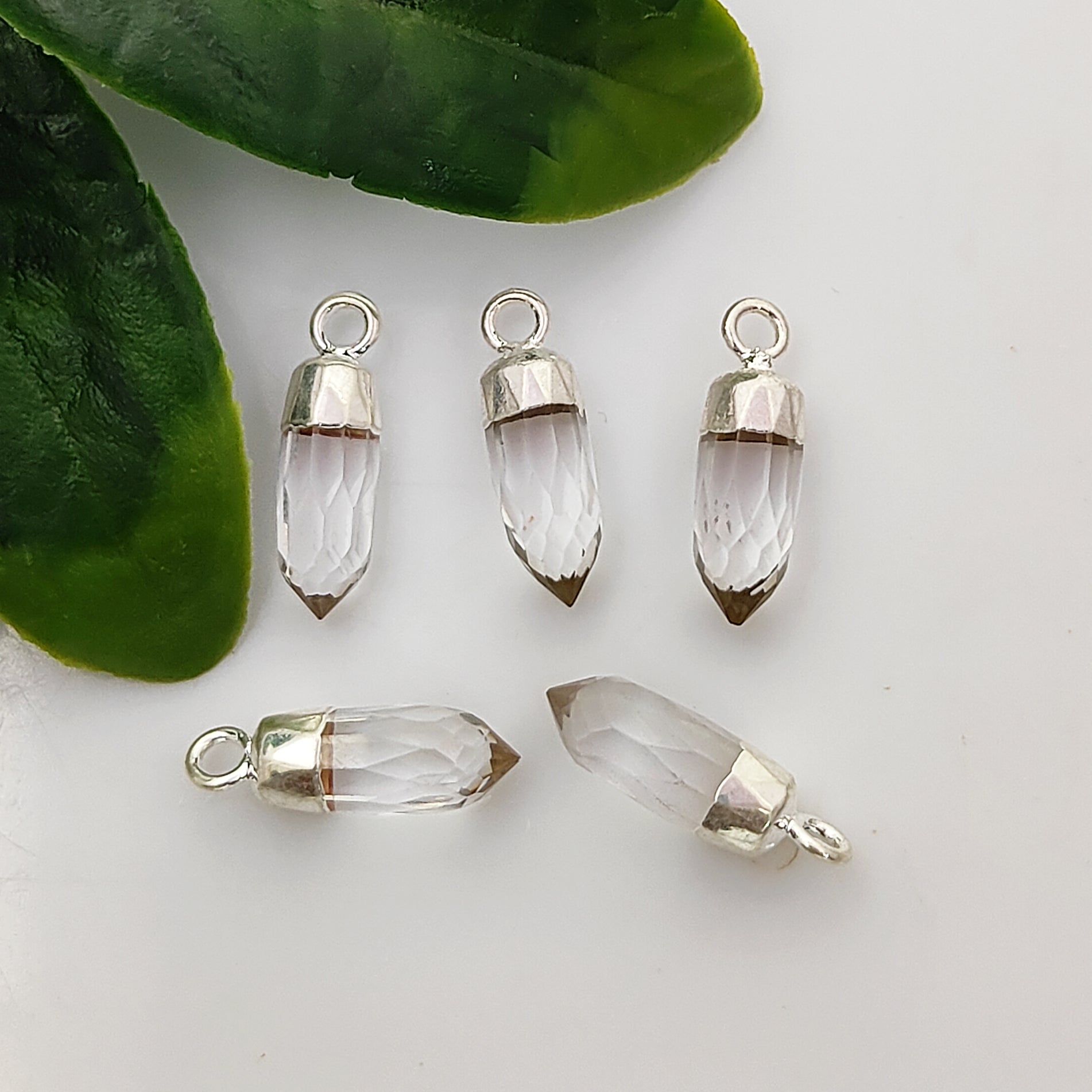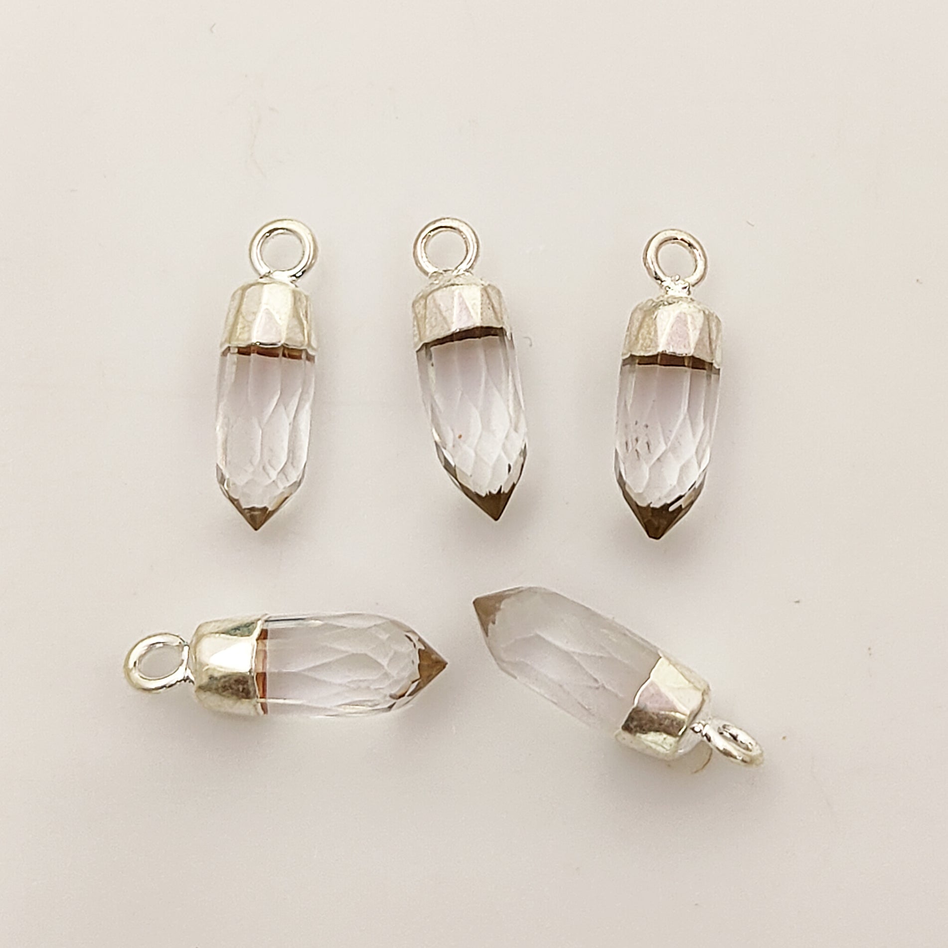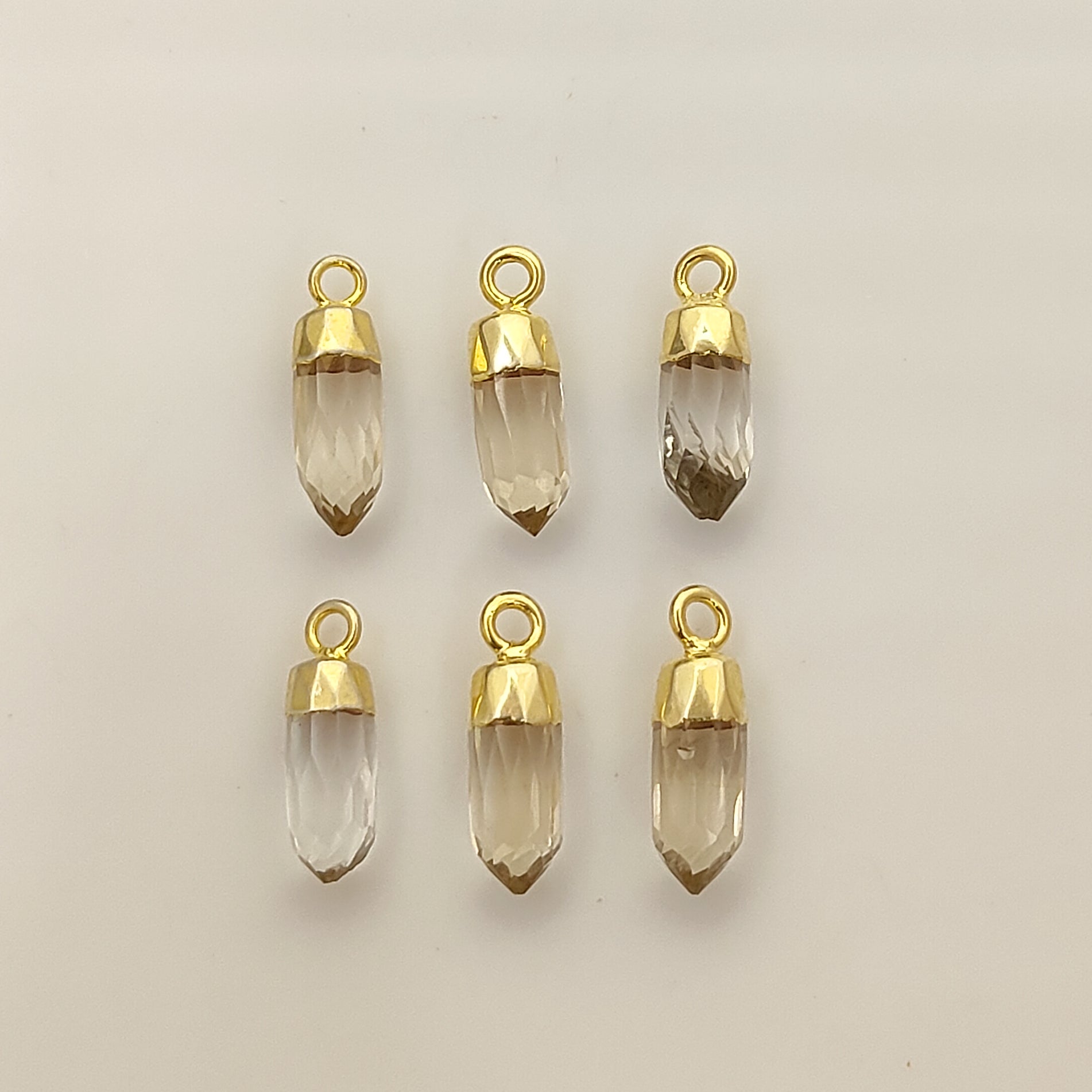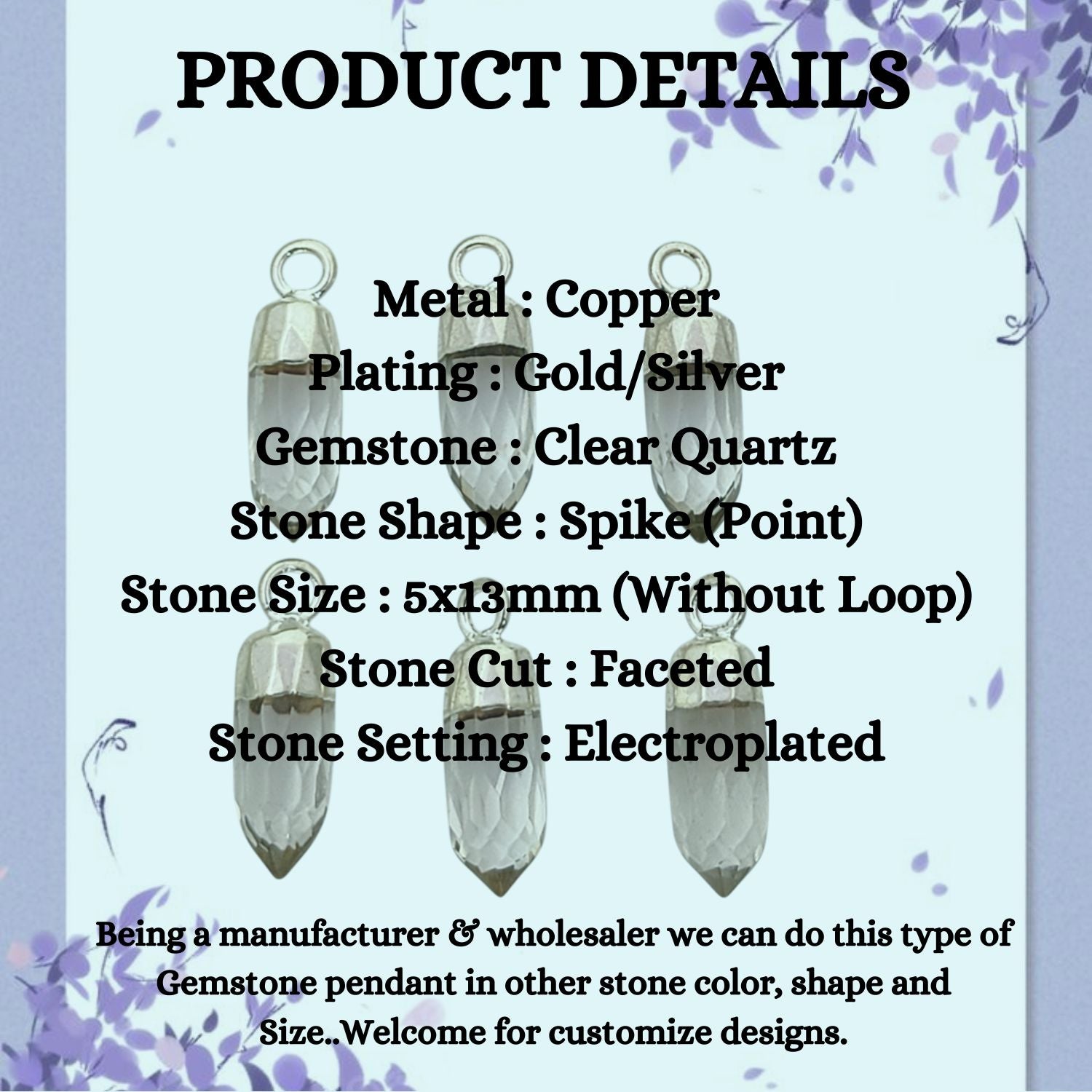 Boho Clear Quartz Spike Pendant Gold/Silver Electroplated Charm for Custom Jewelry Projects- Selling Per Piece