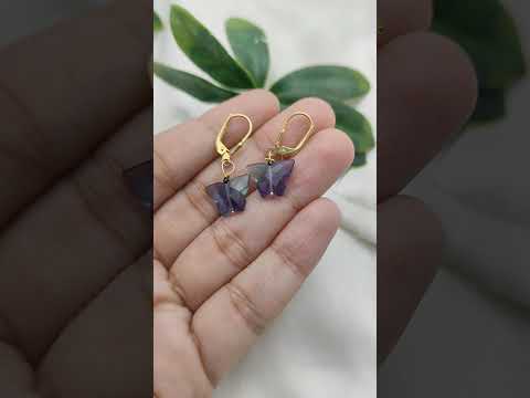 Bring calming energy and vibrant color into your look with these Boho Fluorite Butterfly Earrings, thoughtfully handcrafted from natural Fluorite gemstones. Each butterfly is handcarved, showcasing the beautiful bands of purple, green, and blue unique to Fluorite — a stone known for its clarity and healing properties. Set in high-quality 925 sterling silver and finished with radiant gold plating, these dangle earrings offer a lightweight yet elegant statement. The secure lever-back clasps ensure comfort and ease for everyday wear or special moments. These earrings are sold by the pair and are a meaningful gift for crystal lovers, free spirits, or anyone who adores nature-inspired jewelry.