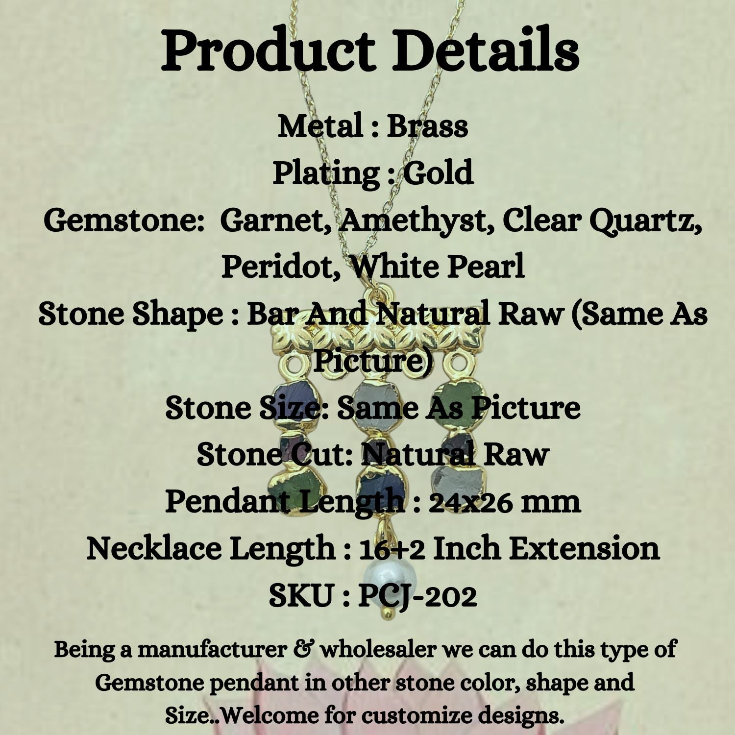 Being a manufacturer we can do this type of gemstone pendant in other stone color, shape and size.. Welcome for customize designs.