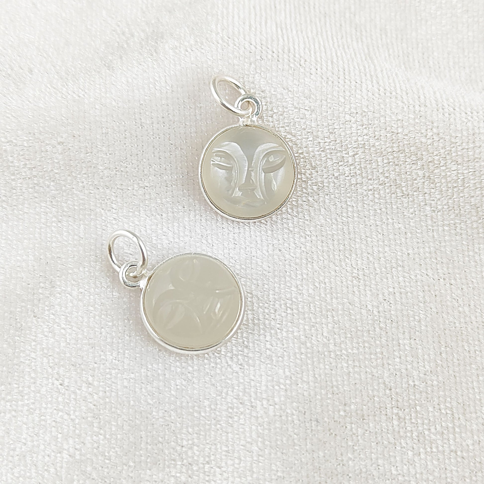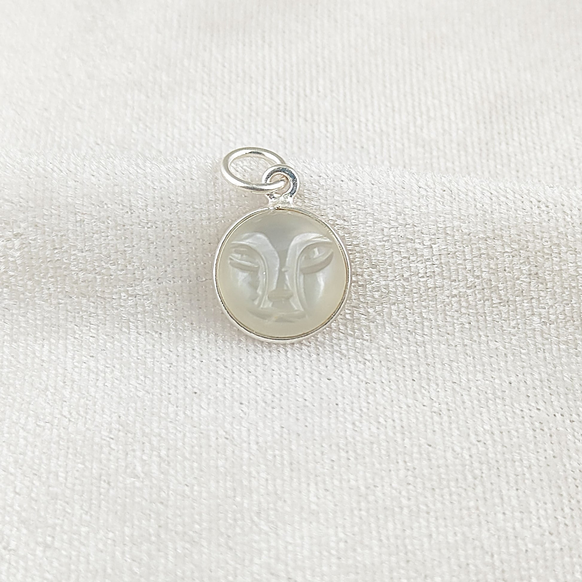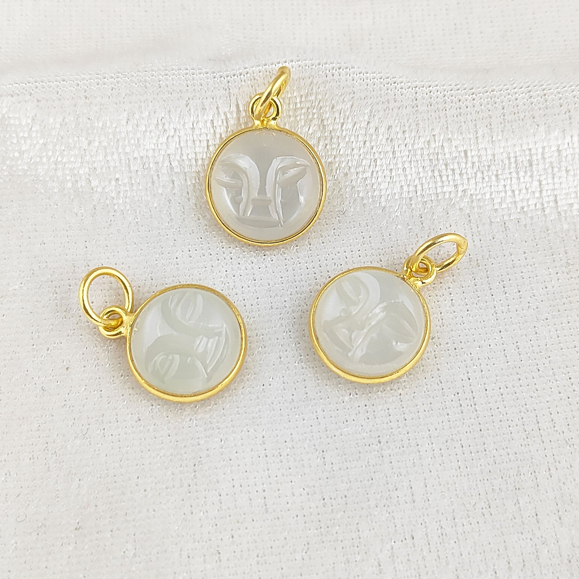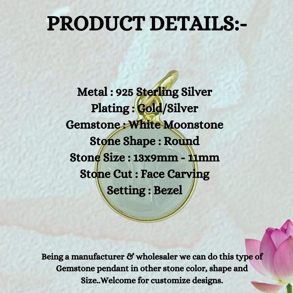 Carved White Moonstone Moon Face Pendant in Gold Plated Sterling Silver Handmade Spiritual Healing Gemstone Necklace – Selling Per Piece
