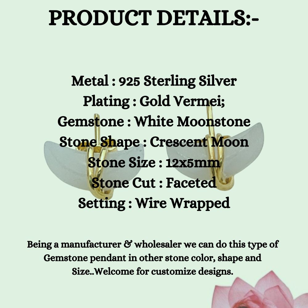 Celestial White Moonstone Crescent Stud Earrings, Dainty Gold Plated Half Moon Gemstone Jewelry- Selling Per Pair