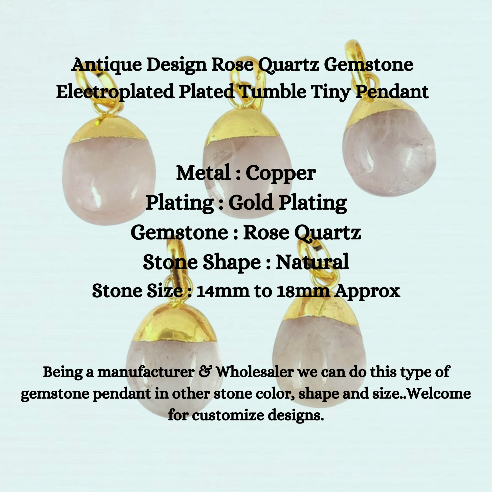 Charming Antique Design Rose Quartz Gemstone Electroplated Plated Tumble Tiny Pendant Necklace For Women- Selling Per Piece