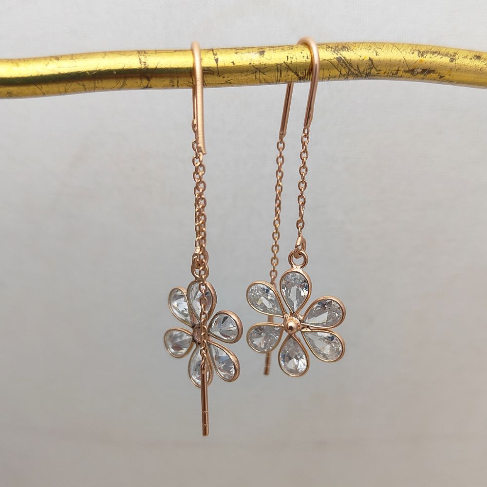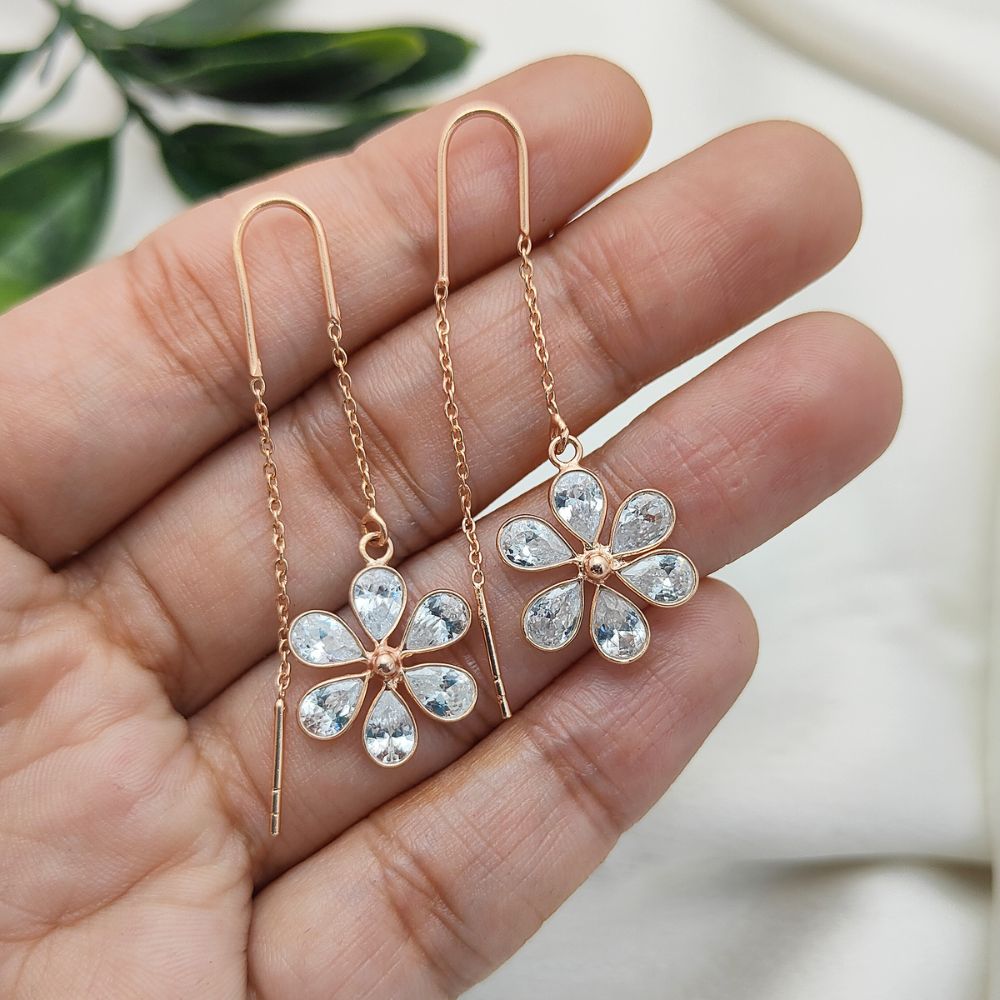 Delicate, modern, and endlessly versatile these Clear Cubic Zirconia threader earrings are a stunning addition to any jewelry collection. Handcrafted with precision, each earring features a sparkling pear-shaped clear CZ stone that catches the light with every movement. Set in rose gold plated sterling silver, the threader style adds a contemporary twist to this classic silhouette. Lightweight and elegant, these earrings are perfect for day-to-night wear, from brunch dates to evening soirées.