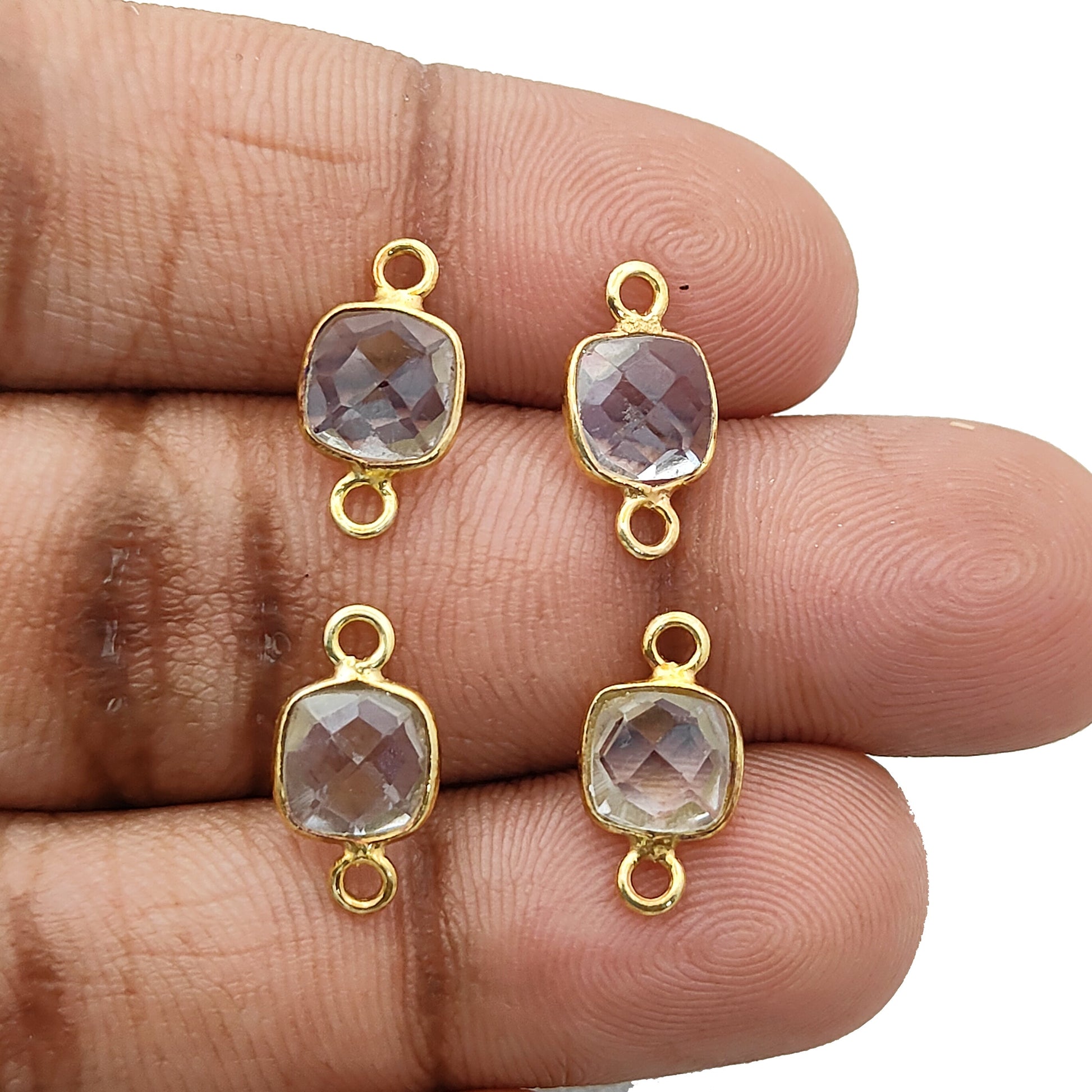 Cushion Crystal Quartz Connector Faceted Clear Quartz in Gold Plated Silver Handmade Charm-Selling Per Piece