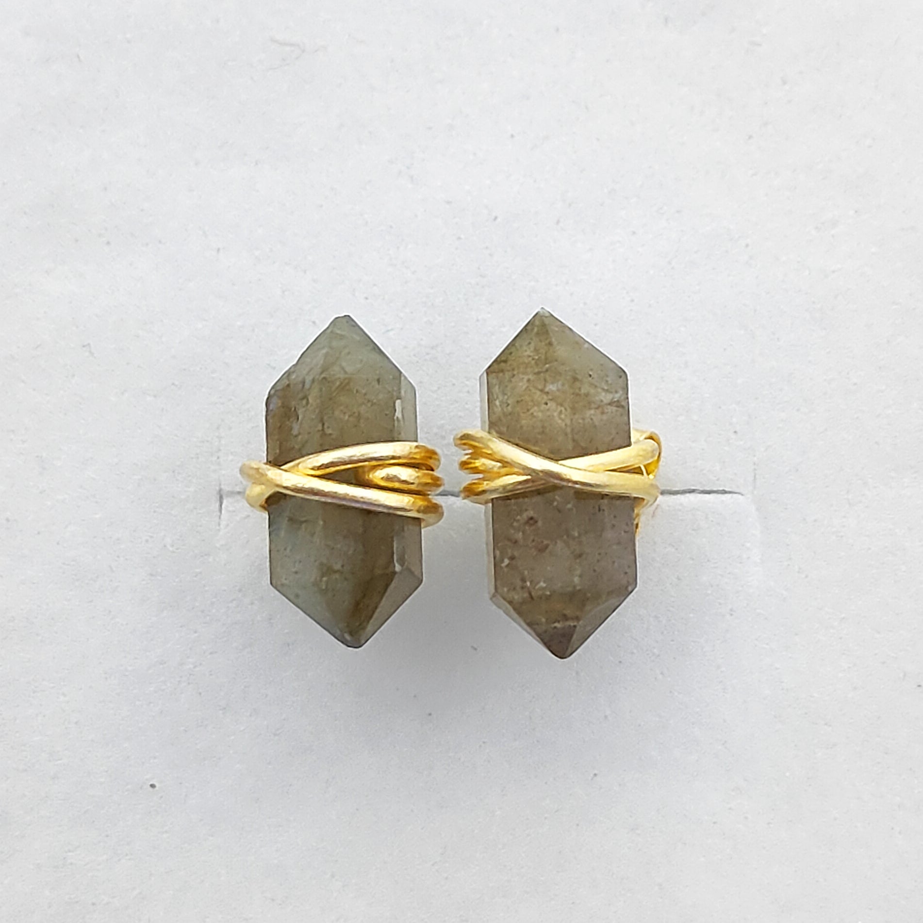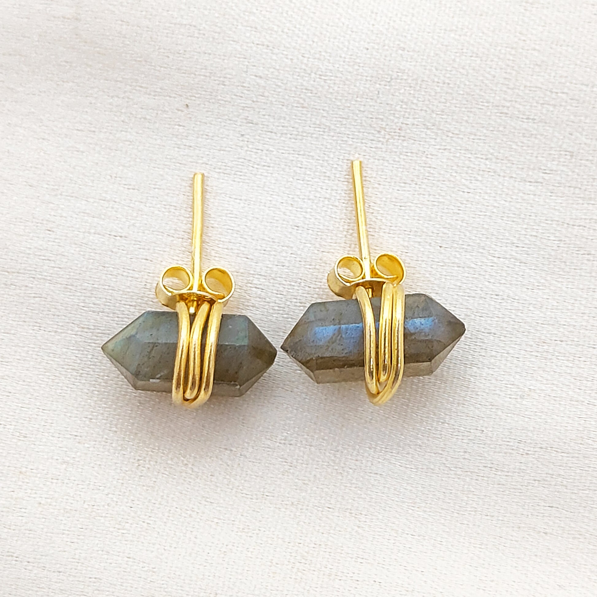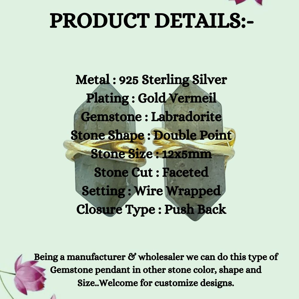 Dainty Labradorite Stud Earrings, Handmade 12x5mm Gold Vermeil Gemstone Jewelry – Selling Per Piece