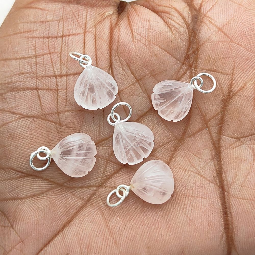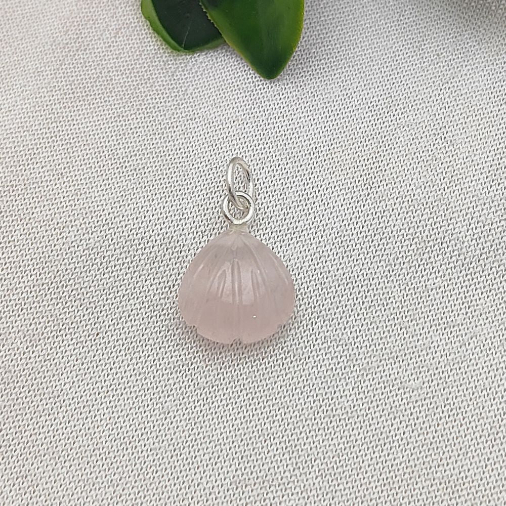 Delicate Rose Quartz Seashell Pendant Handmade 925 Sterling Silver Jewelry