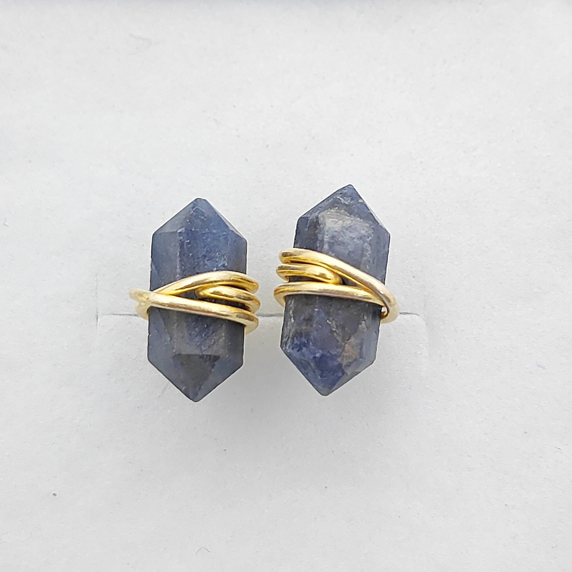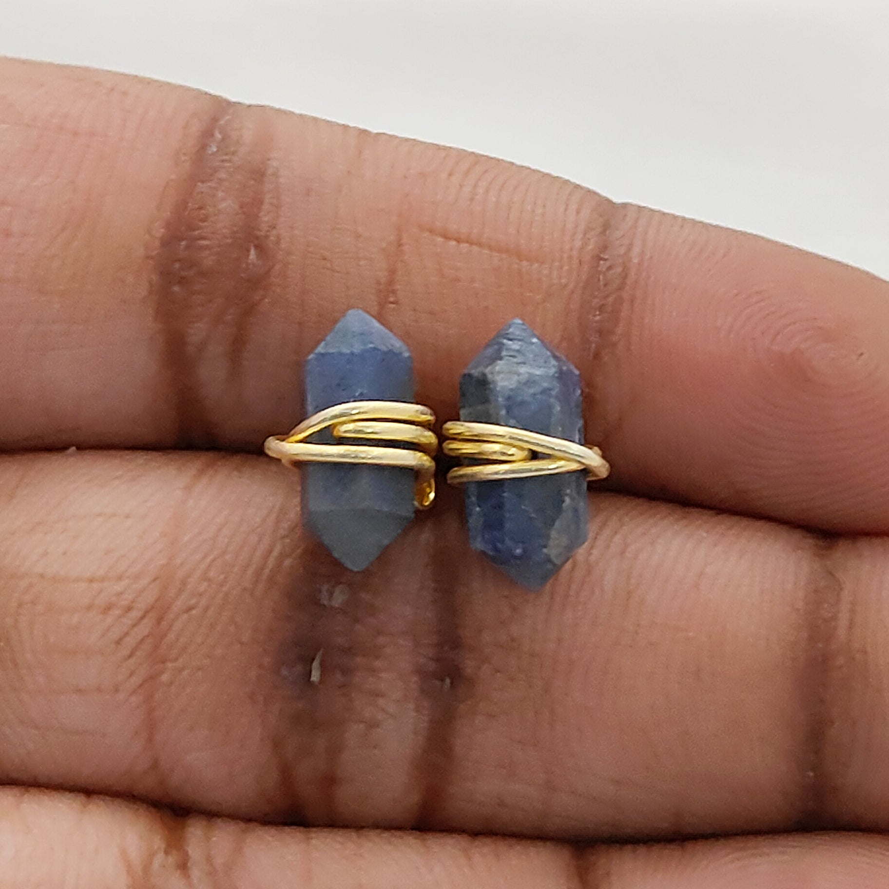 Dyed Sapphire Gold Vermeil Stud Earrings, Handmade 12x5mm Healing Gemstone Jewelry – Selling Per Pair