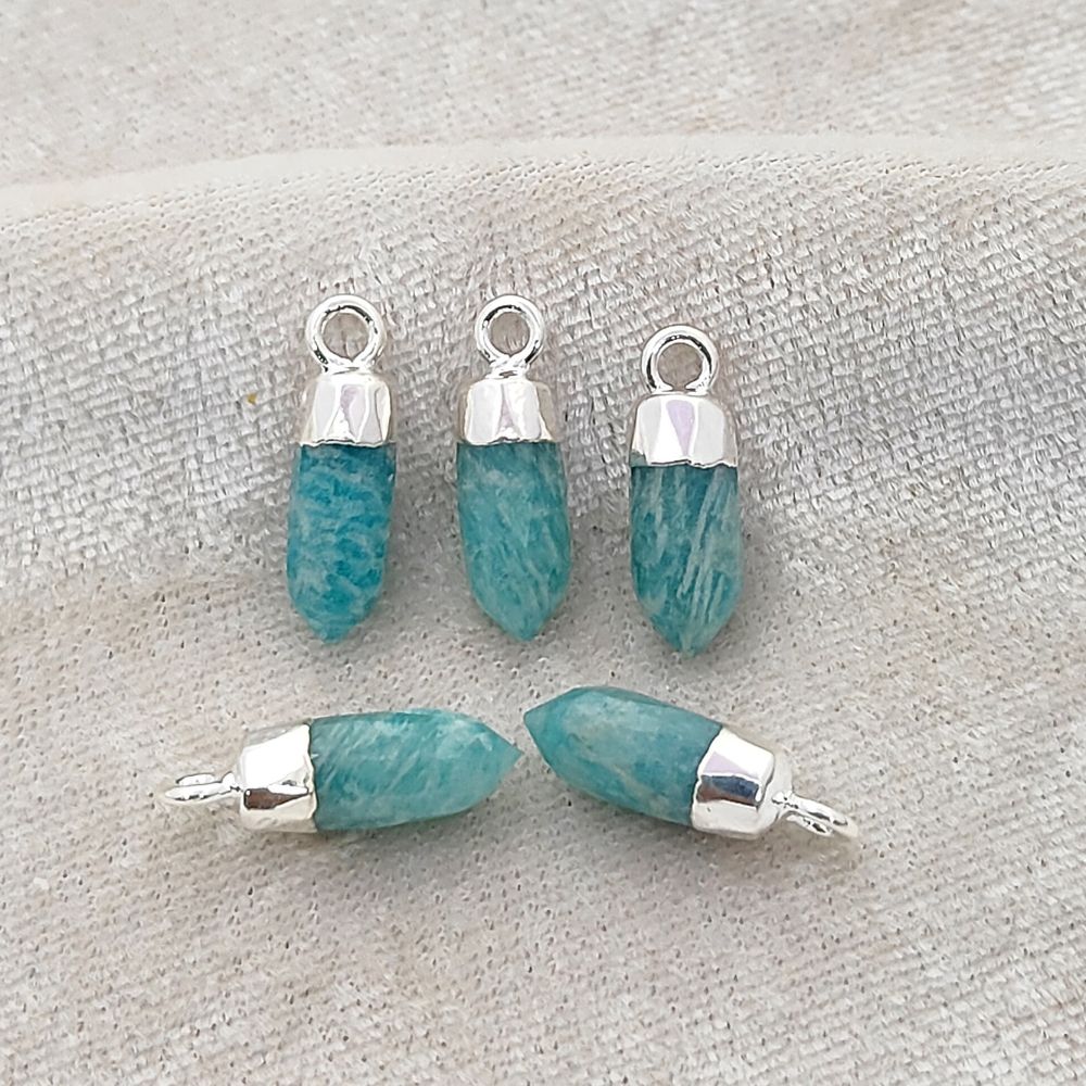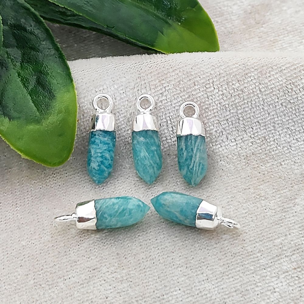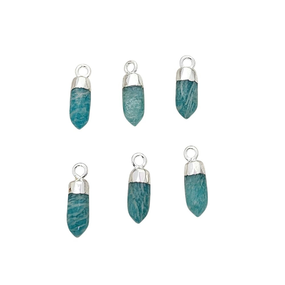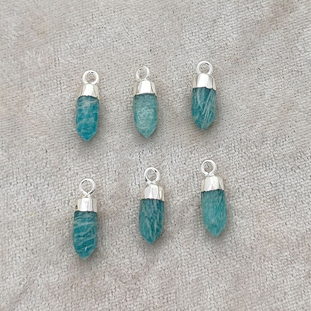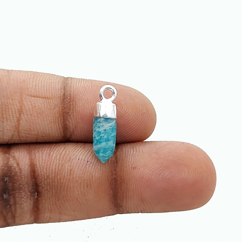 Elegant Amazonite Spike Pendant Silver Capped Natural Birthstone Charm for Boho Chic & Minimalist Jewelry – Selling Per Piece
