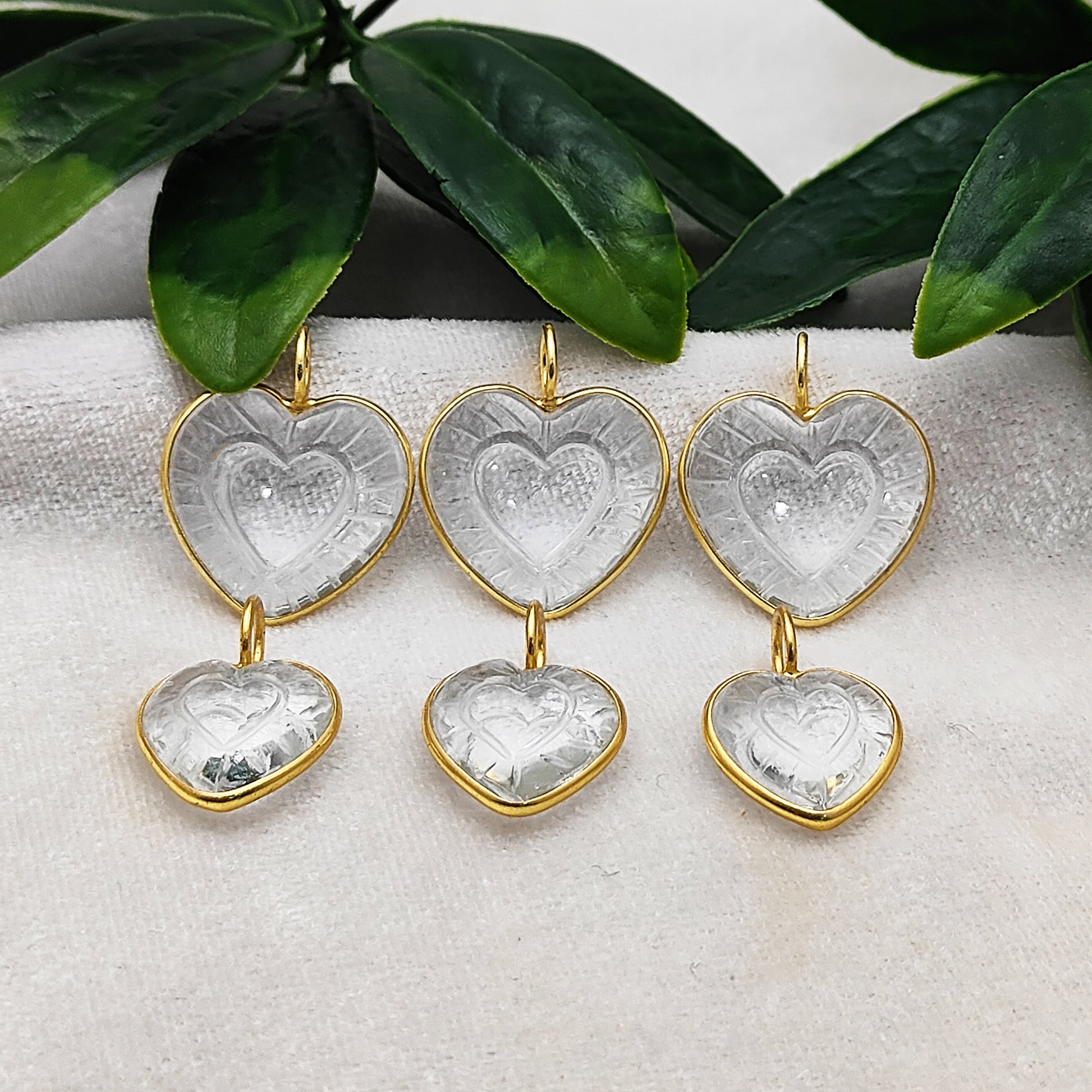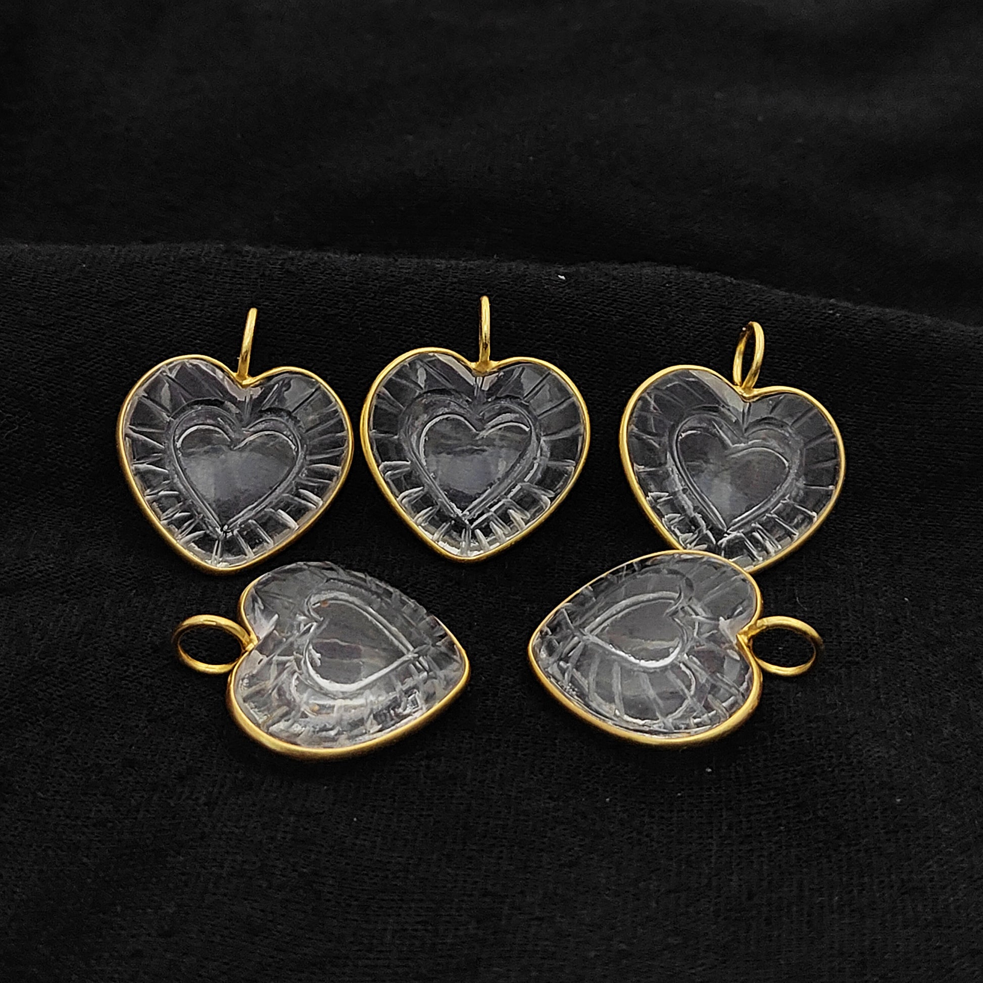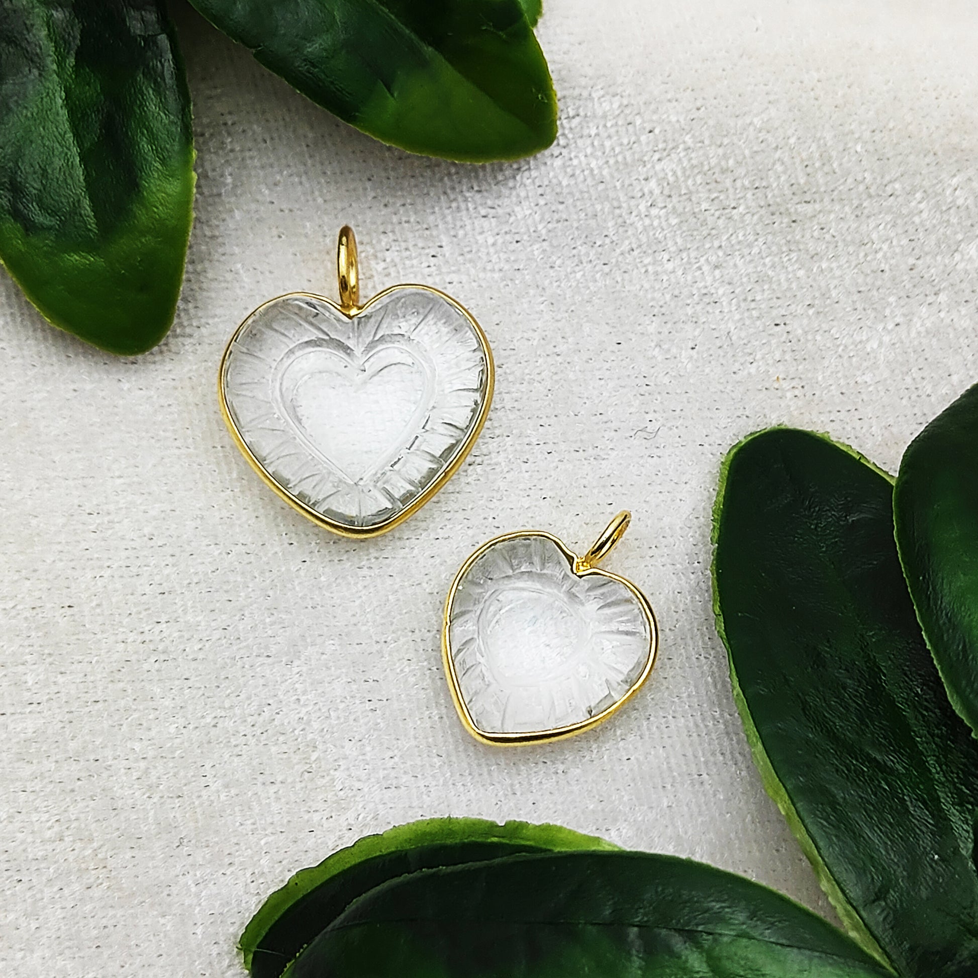 Elegant Clear Quartz Heart Pendant Handmade Gemstone Jewelry in Gold Plated Sterling Silver- Selling Per Piece