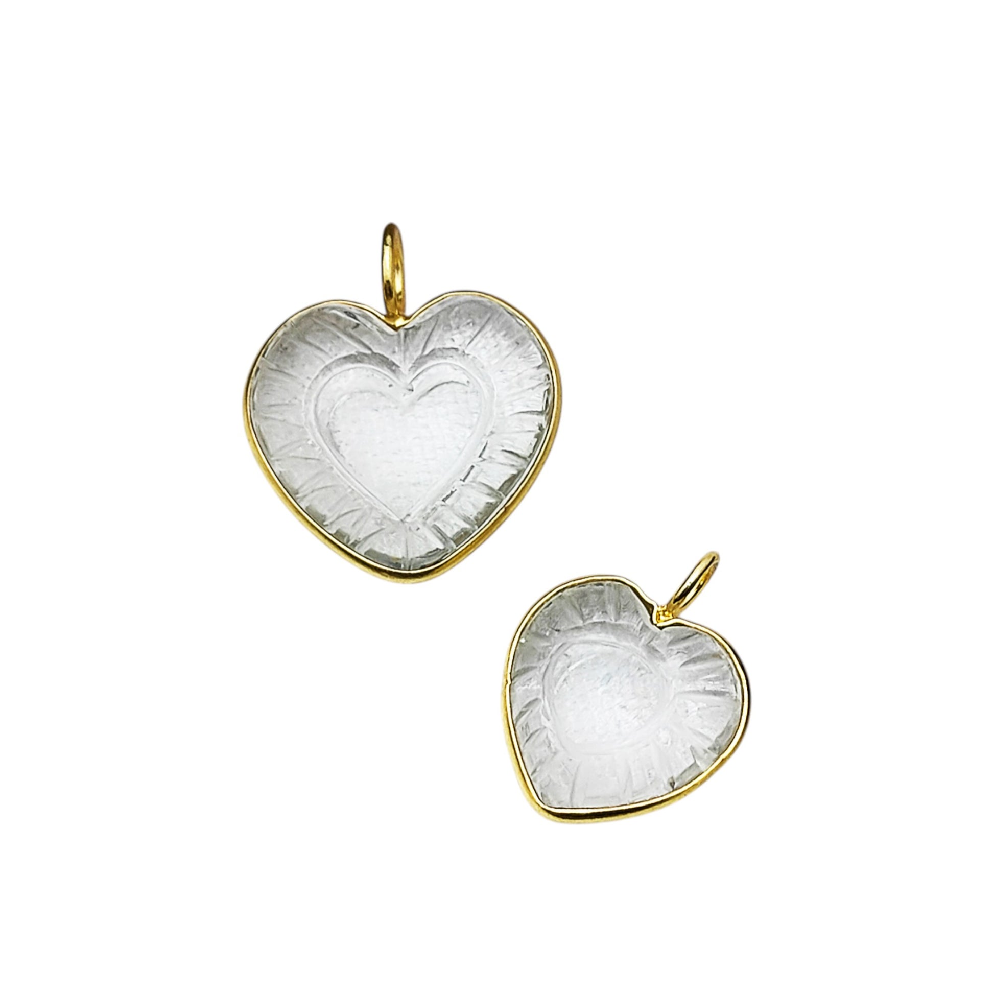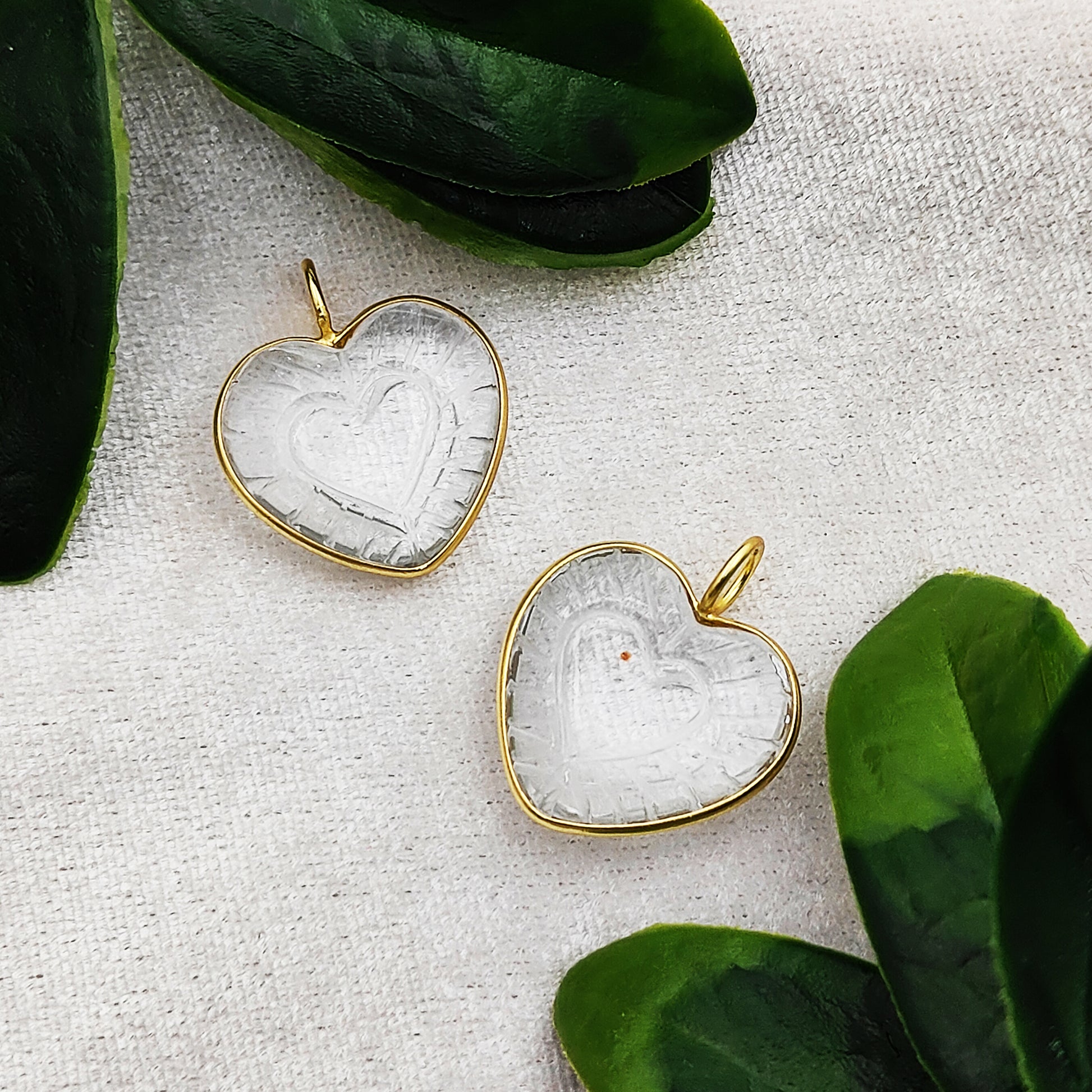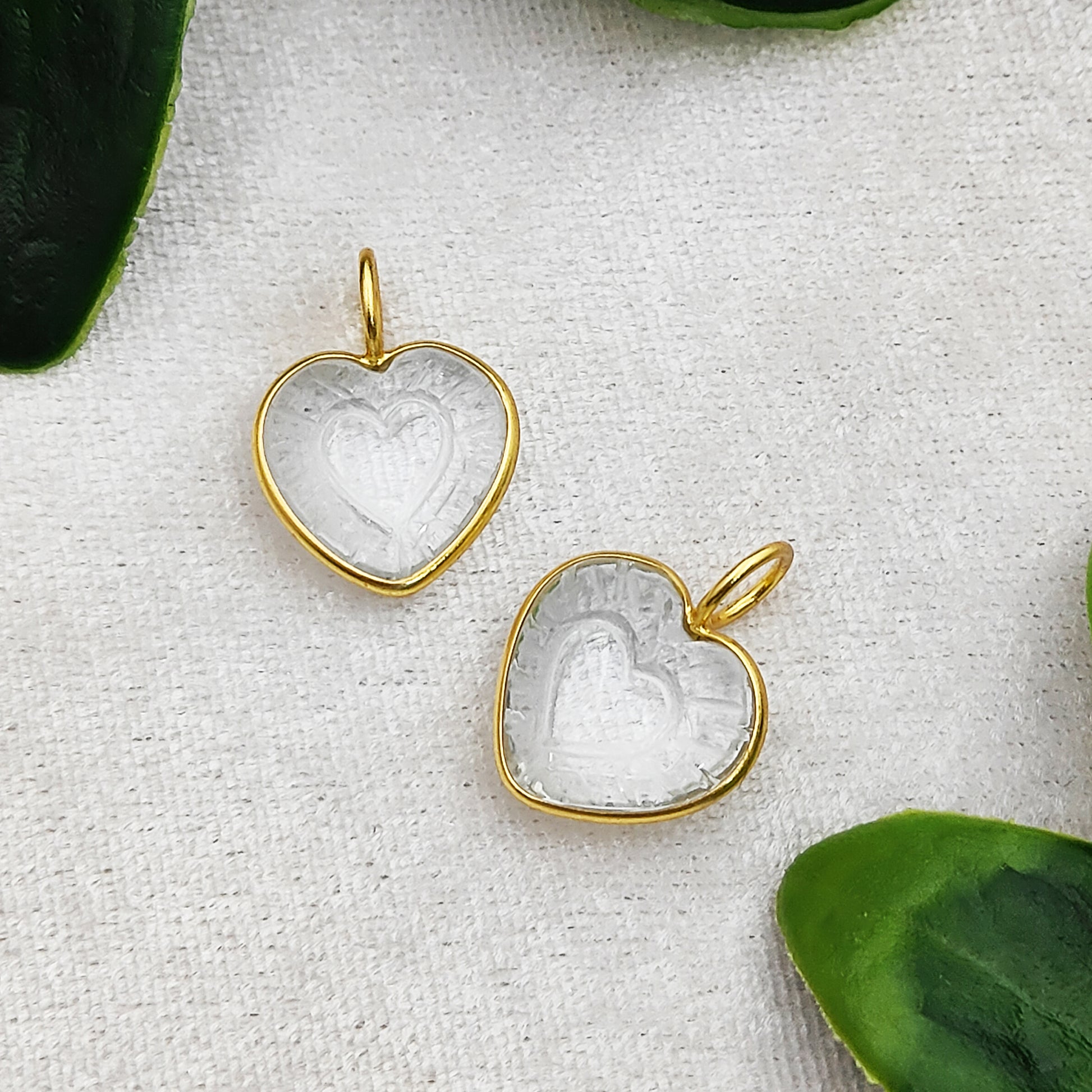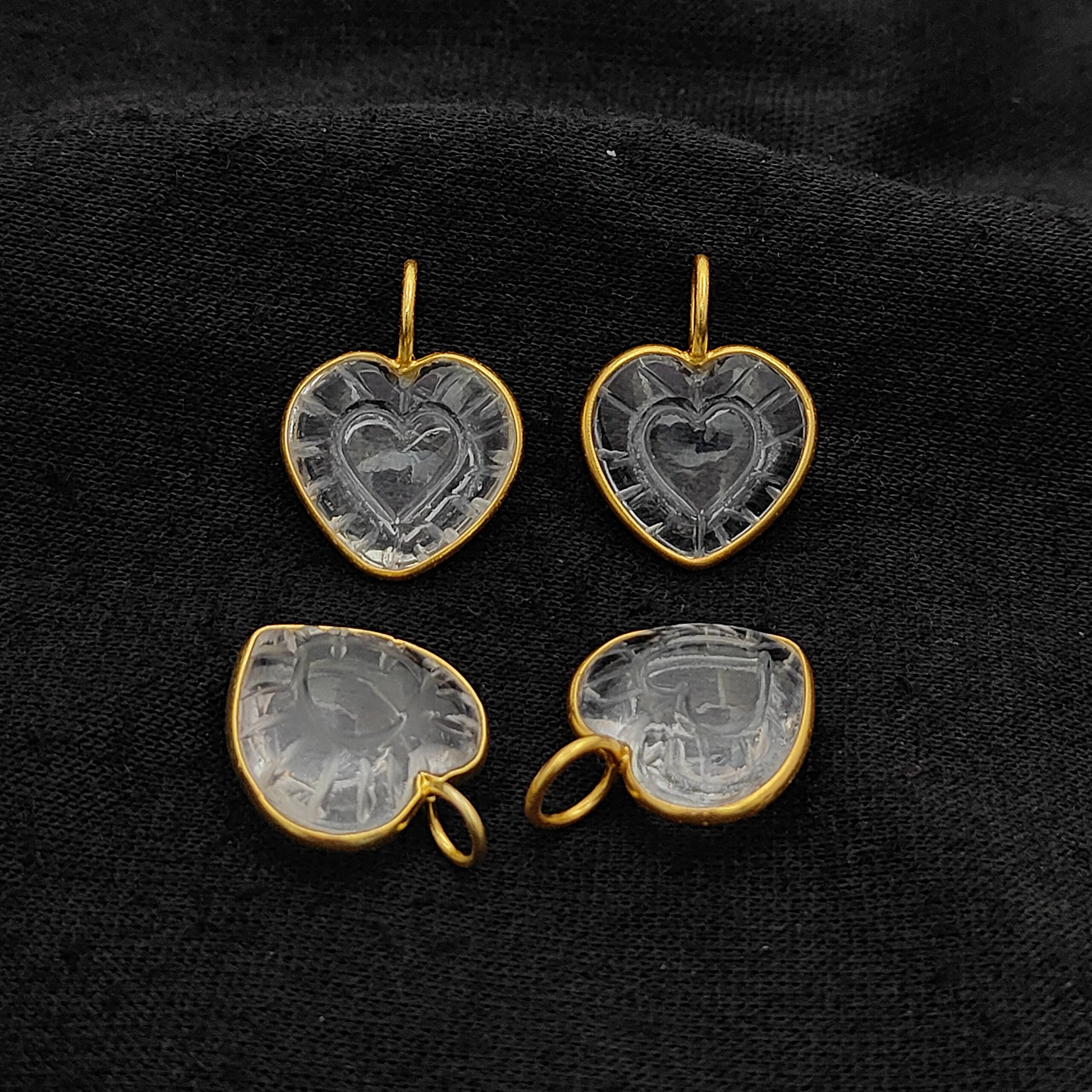 Elegant Clear Quartz Heart Pendant Handmade Gemstone Jewelry in Gold Plated Sterling Silver- Selling Per Piece