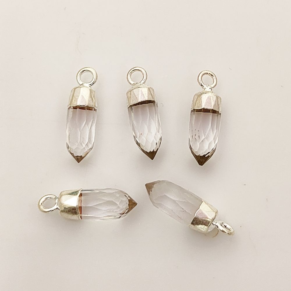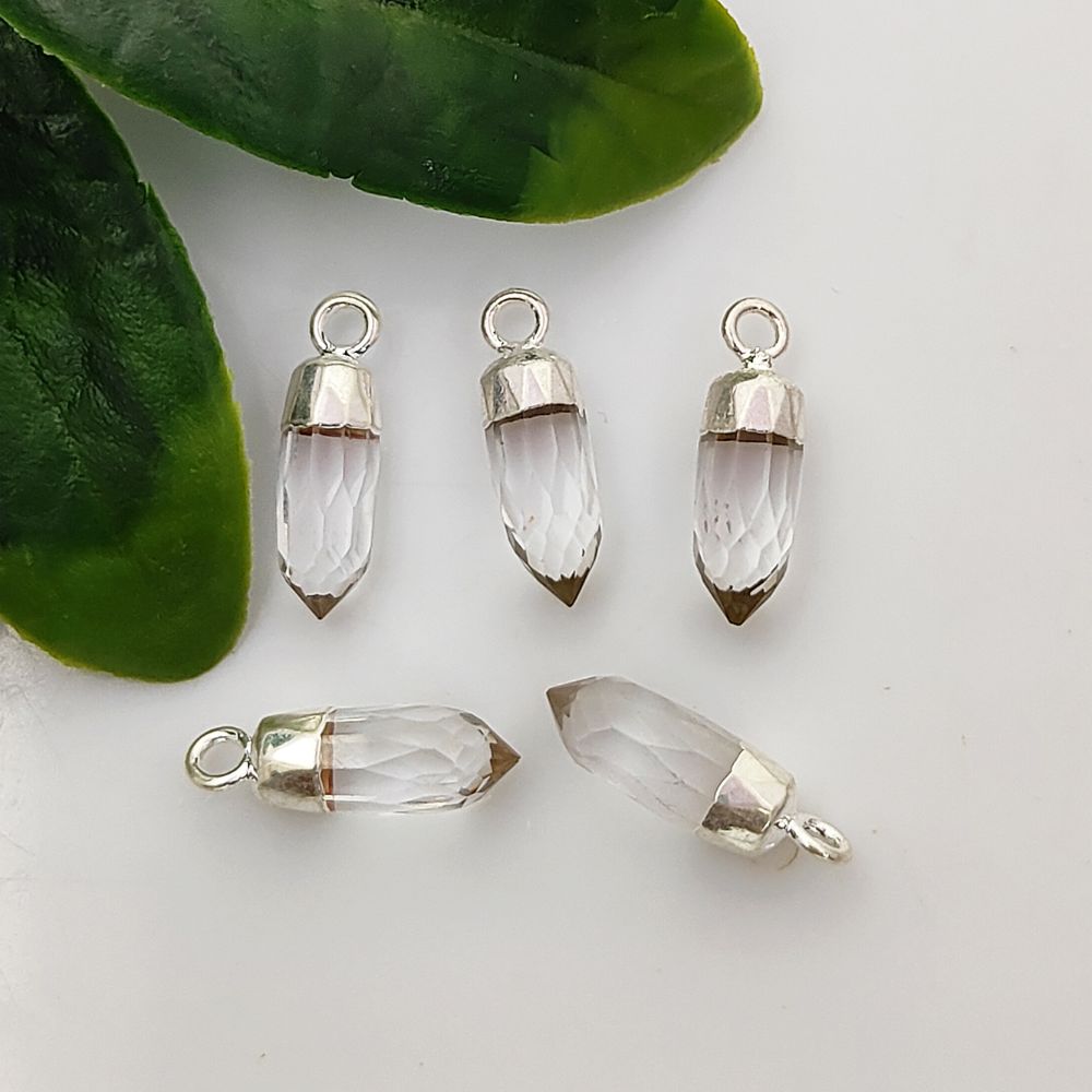 Elegant Clear Quartz Spike Point Pendant with Silver Plating Natural Birthstone Charm for Handmade Jewelry Makers – Selling Per Piece