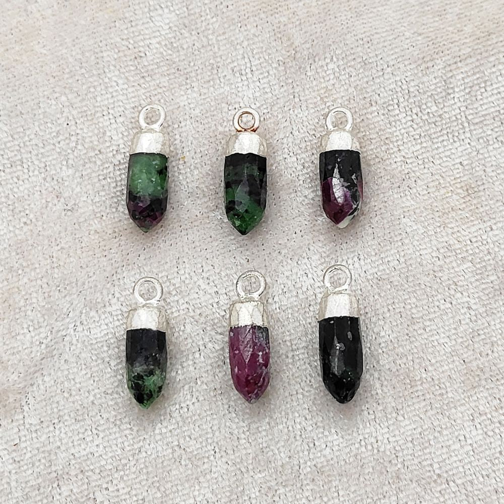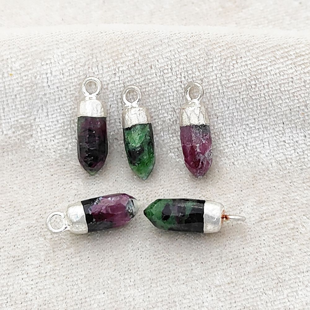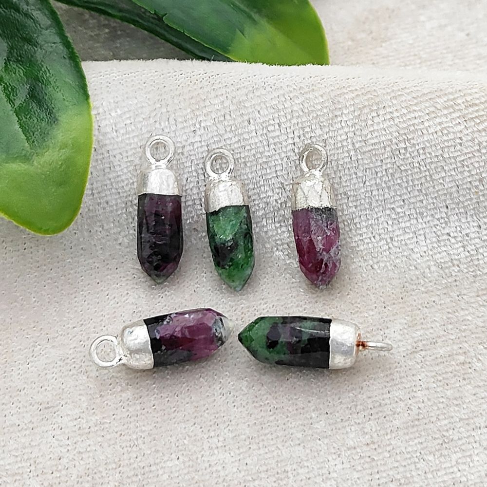 Elegant Ruby Zoisite Spike Point Pendant with Silver Plating Natural Birthstone Charm for Handmade Jewelry Makers – Selling Per Piece