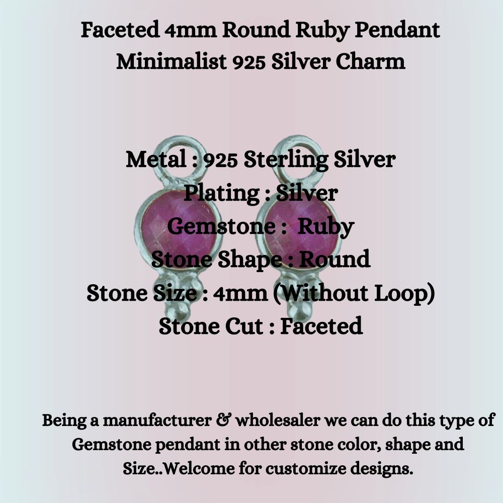 Faceted 4mm Round Ruby Pendant Minimalist 925 Silver Charm