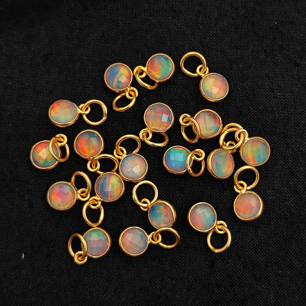 Faceted 6mm Round Opal Charm Pendant in Gold Plated 925 Sterling Silver Dainty Connector for Handmade Jewelry- Selling Per Piece