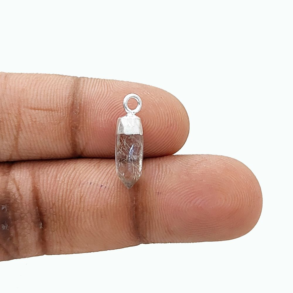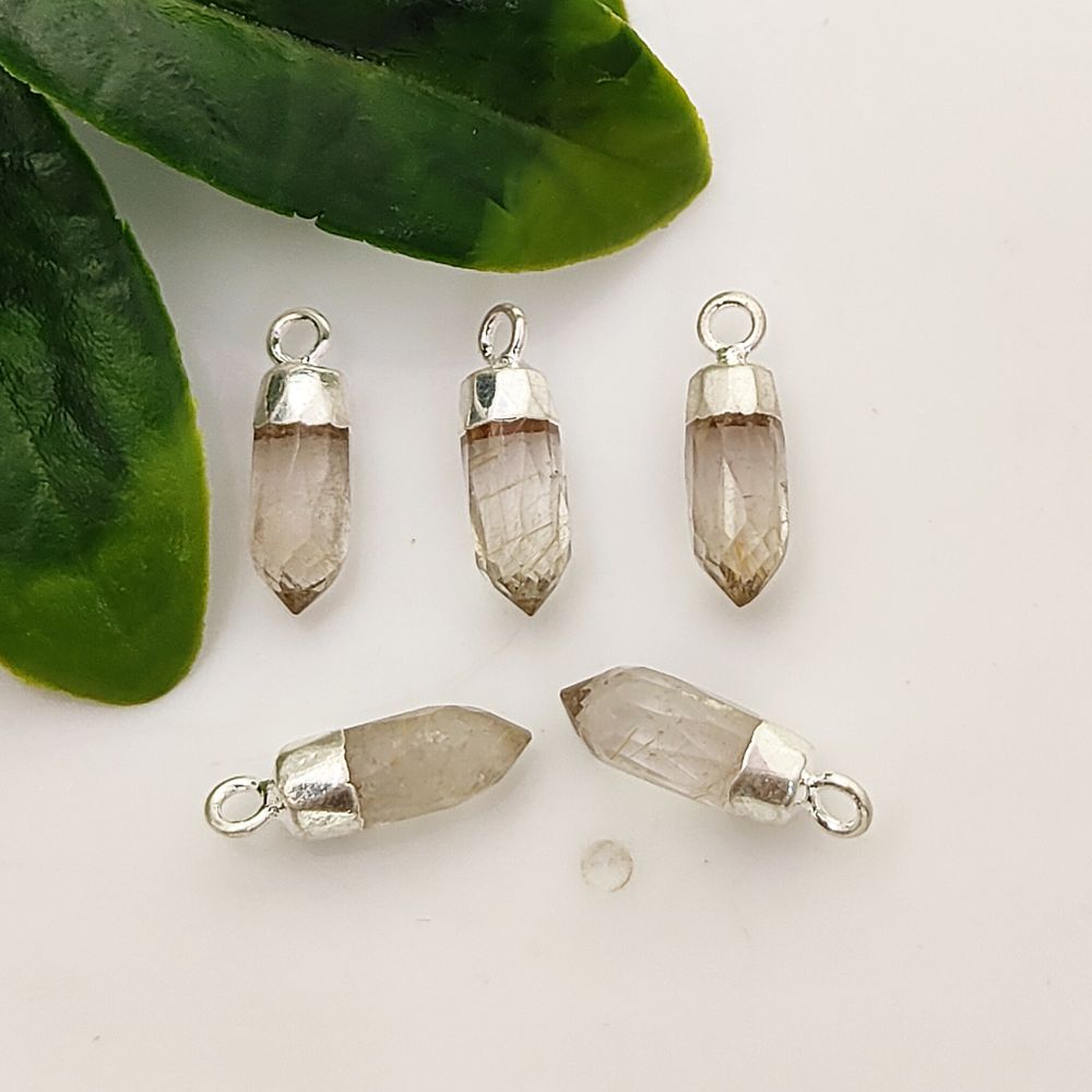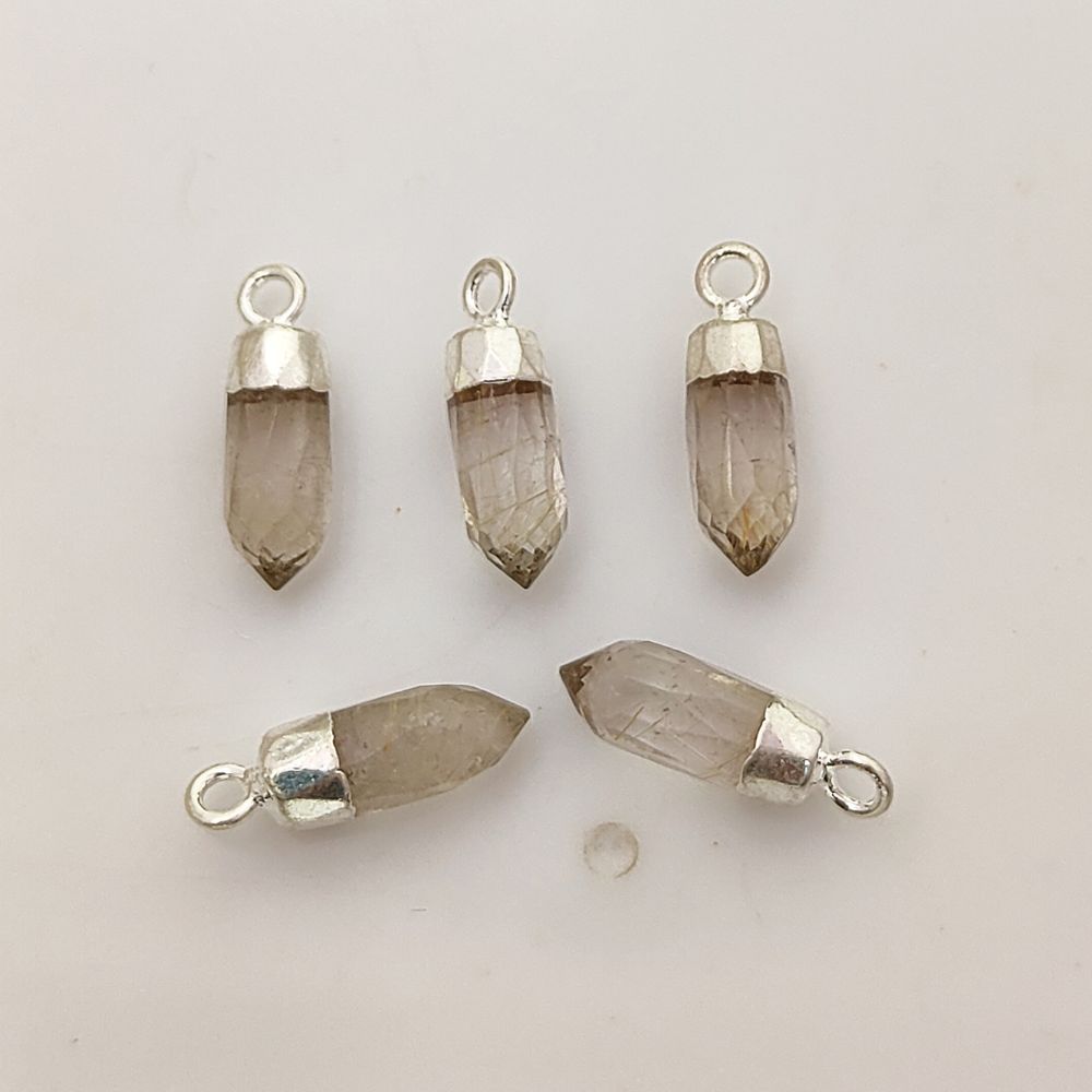 Faceted Golden Rutile Spike Pendant Silver Electroplated Cap Spiritual Gemstone Charm for Handmade Jewelry Designers – Selling Per Piece