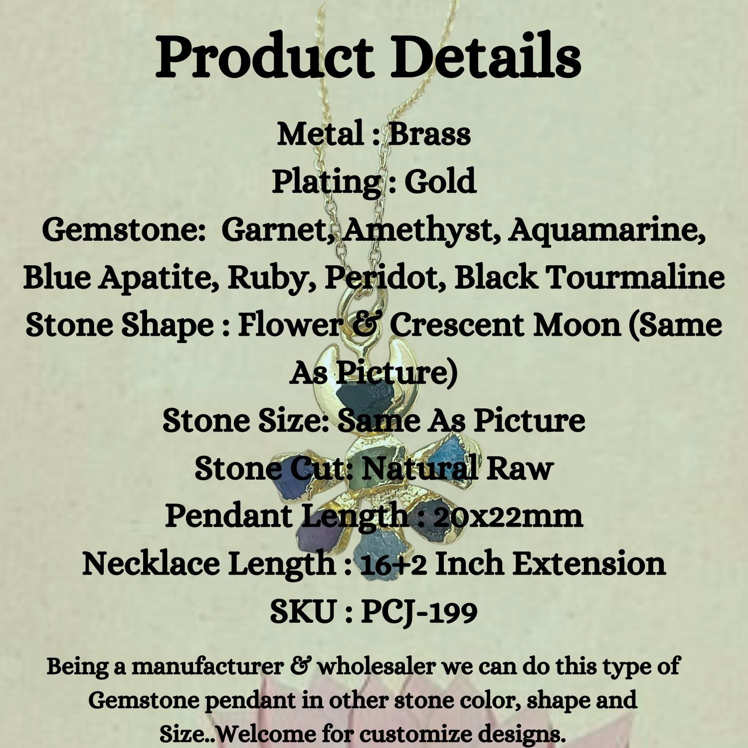 Being a manufacturer we can do this type of gemstone pendant in other stone color, shape and size.. Welcome for customize designs.