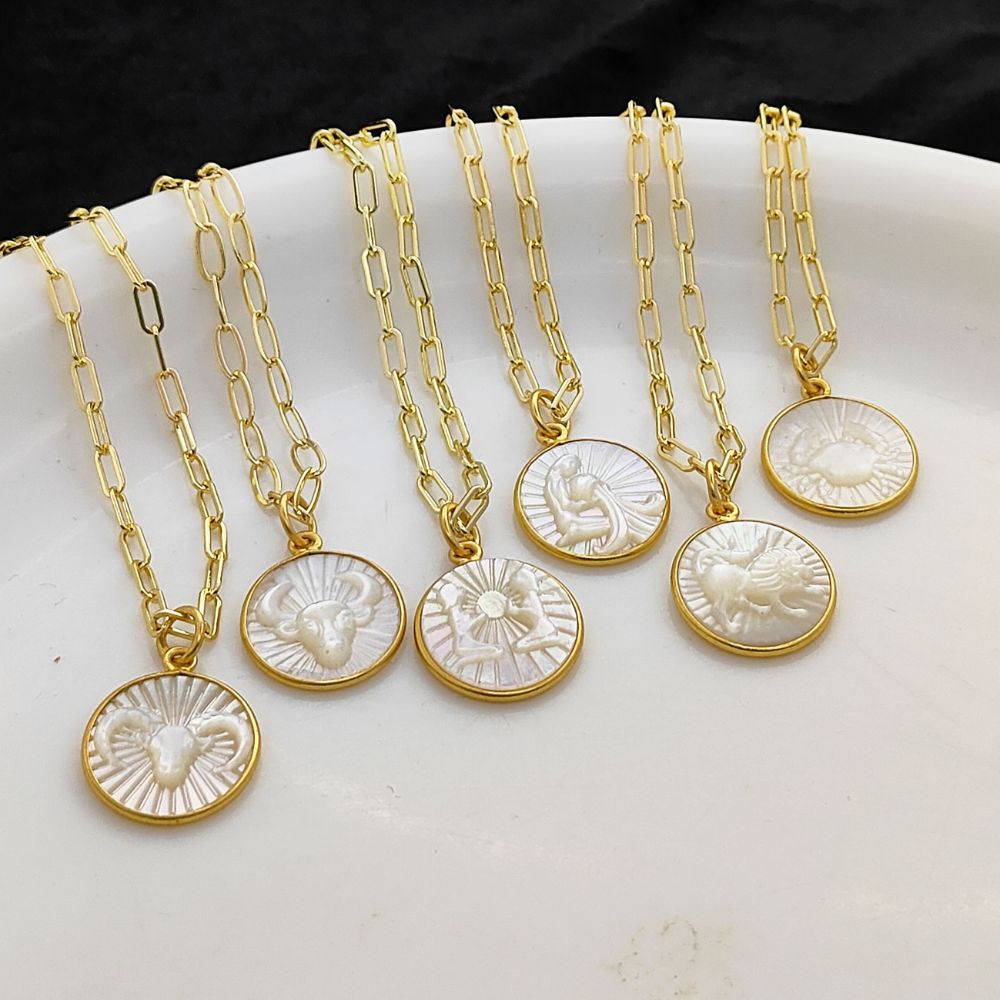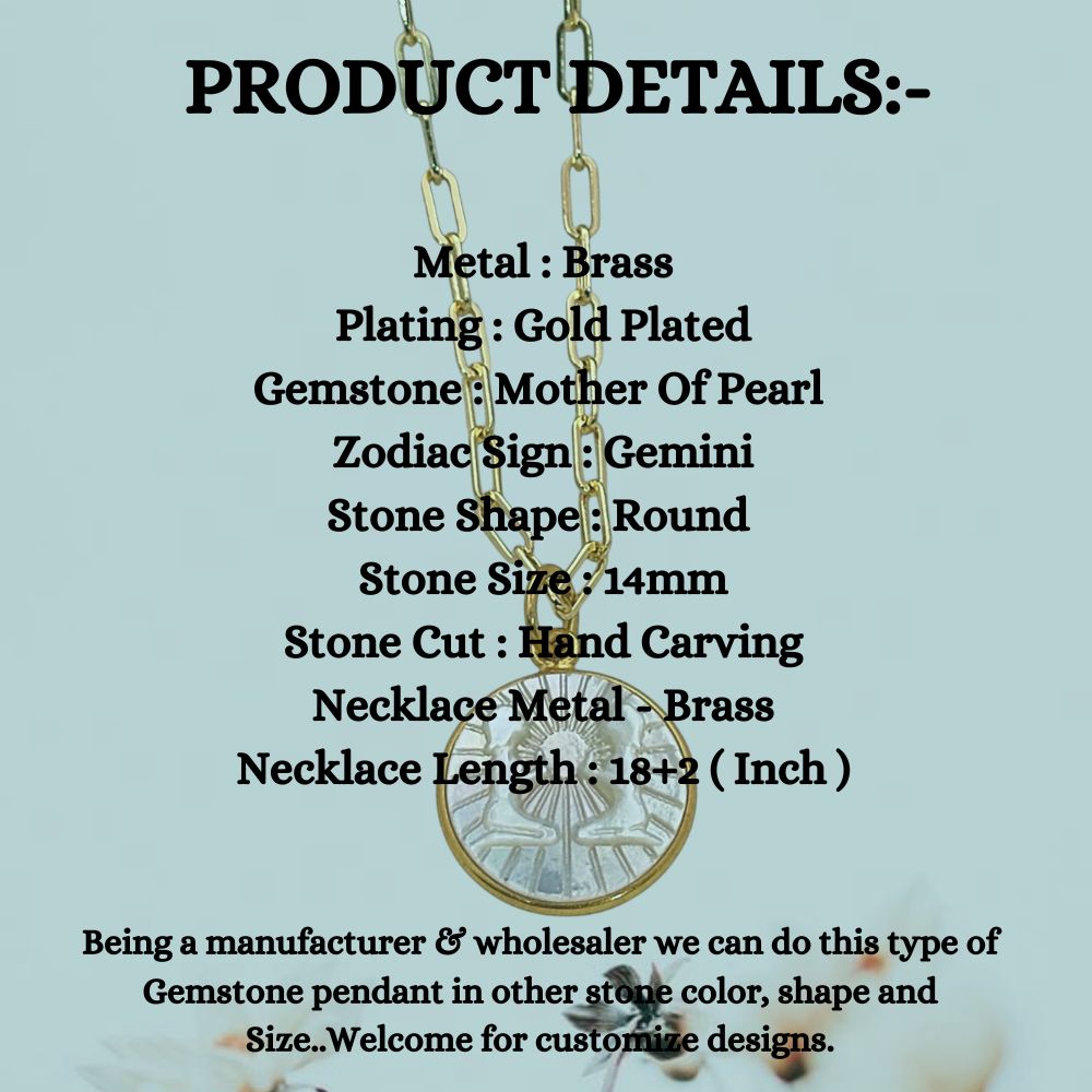 Gemini Star Sign Necklace with Mother of Pearl Pendant with Gold Plated Paperclip Chain Astrology Jewelry Gift for Women- Selling Per Piece