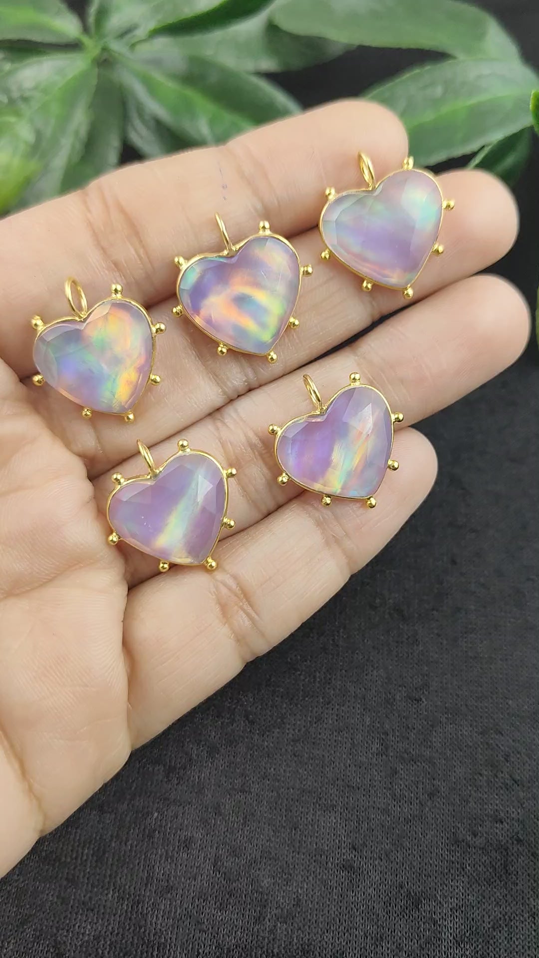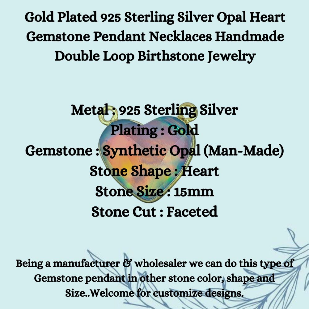 Gold Plated 925 Sterling Silver Opal Heart Gemstone Pendant Necklaces Handmade Double Loop Birthstone Jewelry- Selling Per Piece