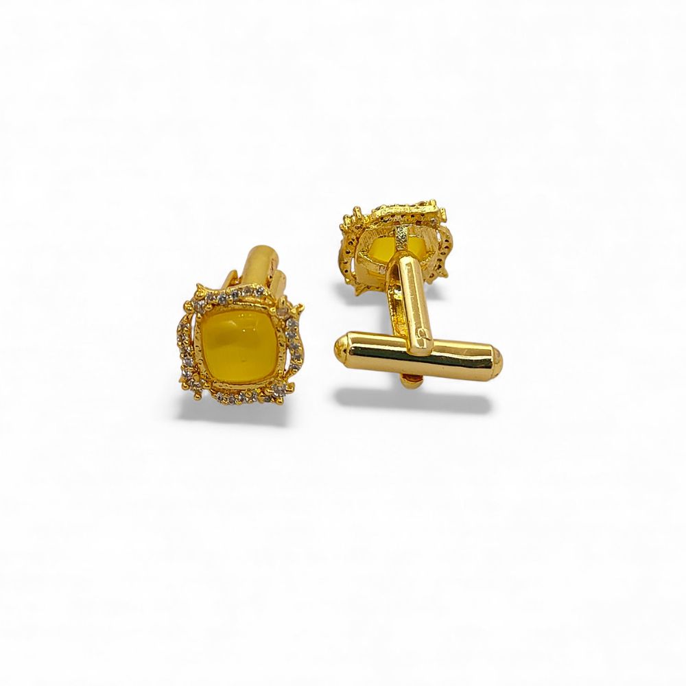 Brighten your formal style with these Gold Plated Cushion Cut Yellow Chalcedony Cufflinks for Men, beautifully handcrafted to deliver sophistication, charm, and a vibrant touch of color. Featuring premium cushion-cut Yellow Chalcedony gemstones, these cufflinks showcase a warm, radiant yellow hue that adds a refreshing and distinguished accent to any formal ensemble. Each stone is securely set in a luxurious gold-plated bezel, offering a stunning contrast that enhances the natural beauty of the gemstone.