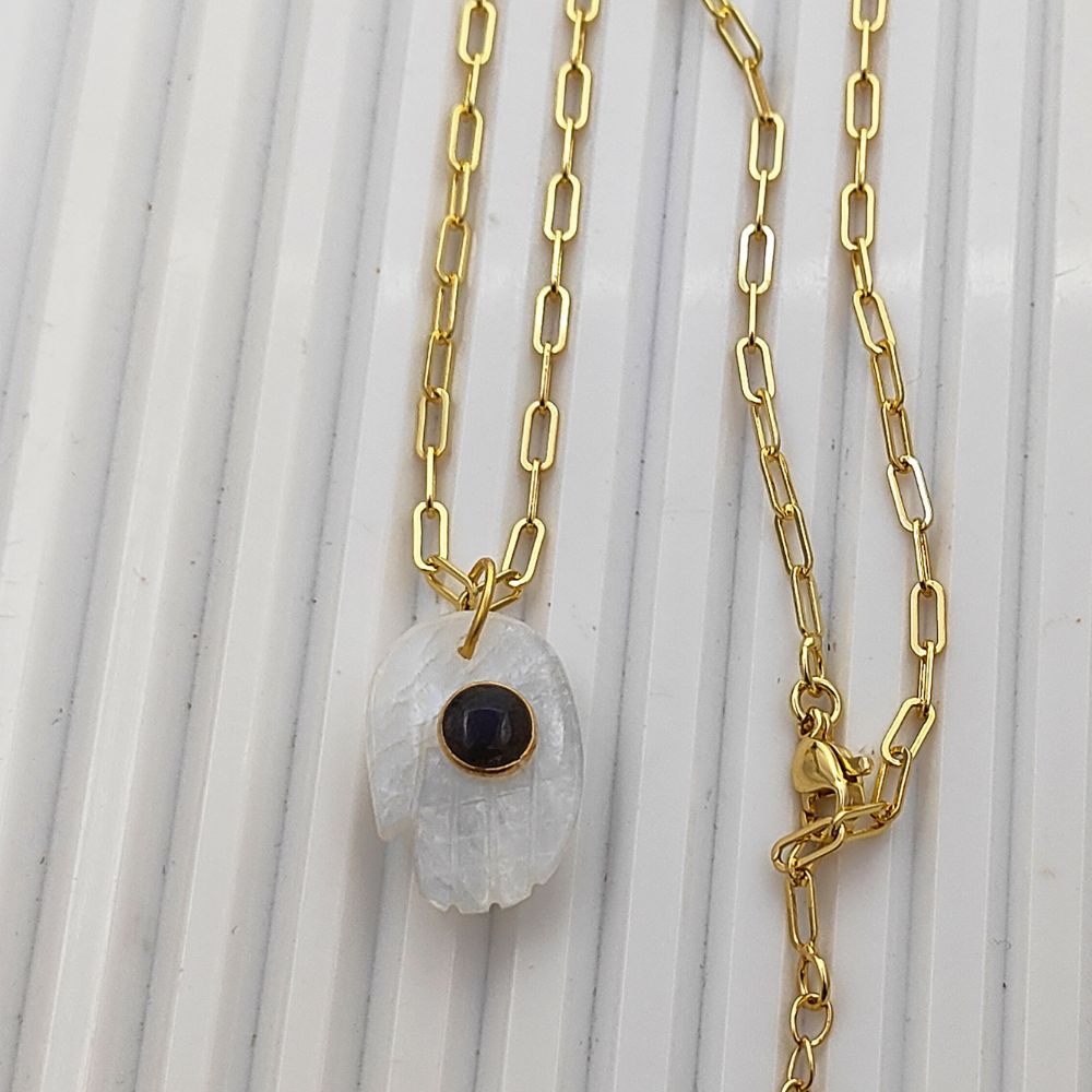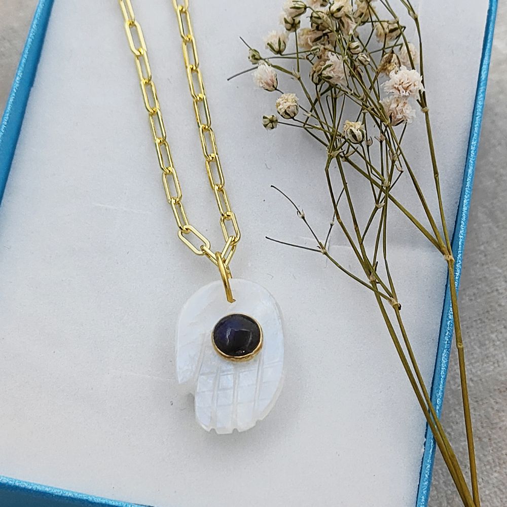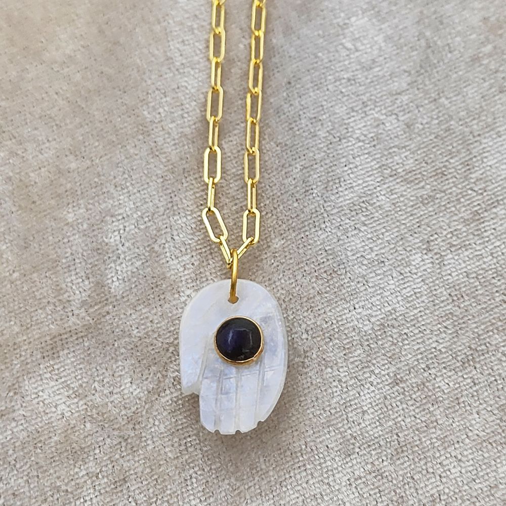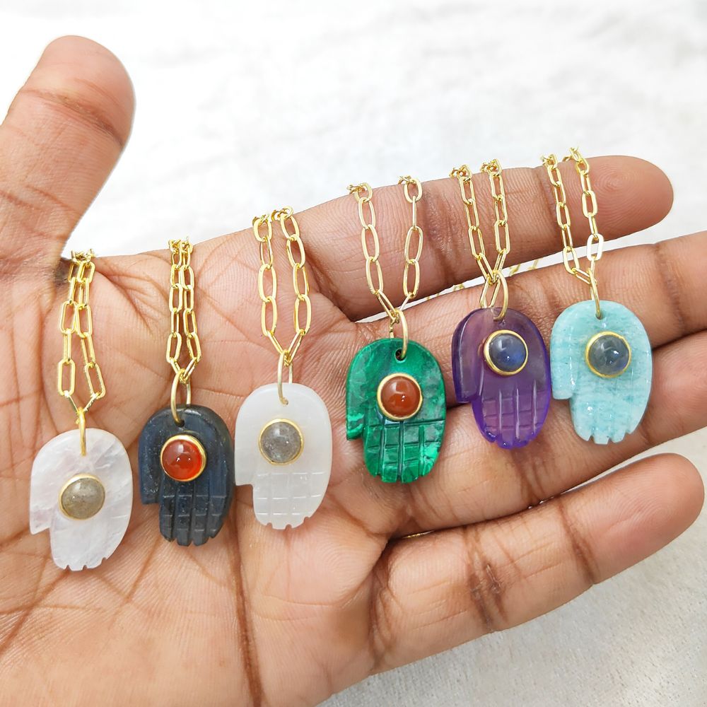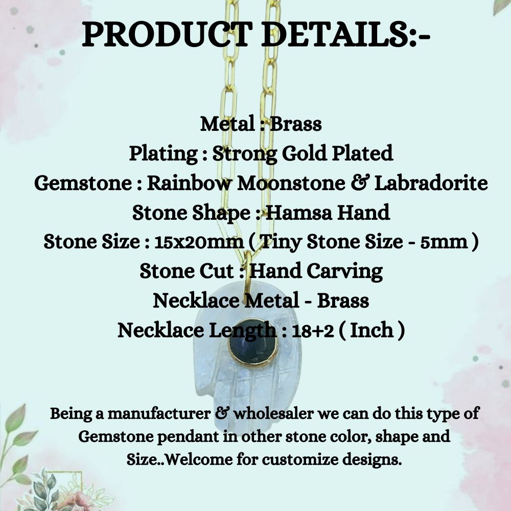 Elevate your style with this handmade Hamsa Hand necklace featuring a genuine Rainbow Moonstone pendant. Set on a gold plated chain, this Bohemian spiritual jewelry piece symbolizes protection, positivity, and good energy. Perfect as a meaningful gift for women on birthdays, anniversaries, or any special occasion.