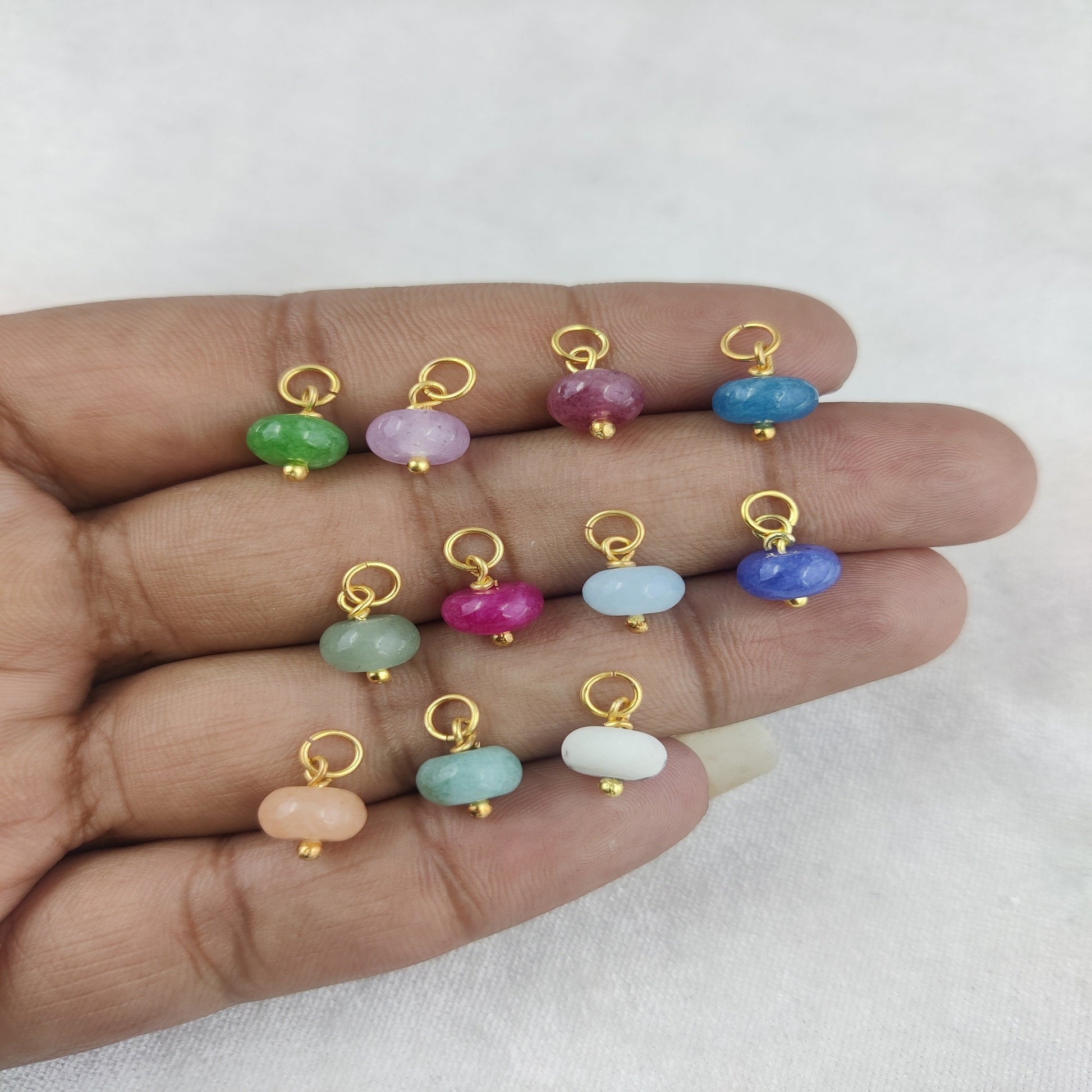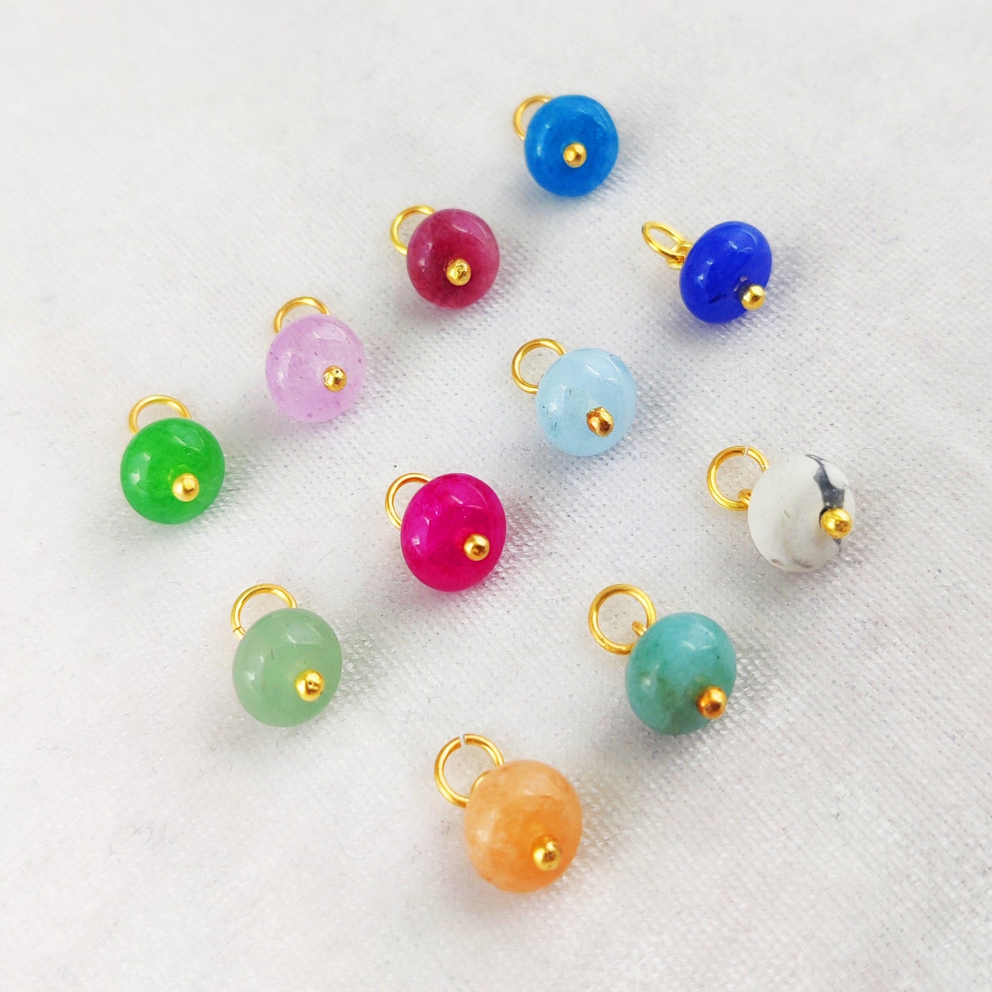 Elevate your jewelry designs with these elegant 8mm roundel gemstone bead charms, crafted with premium gemstones and a stunning gold-plated sterling silver finish.