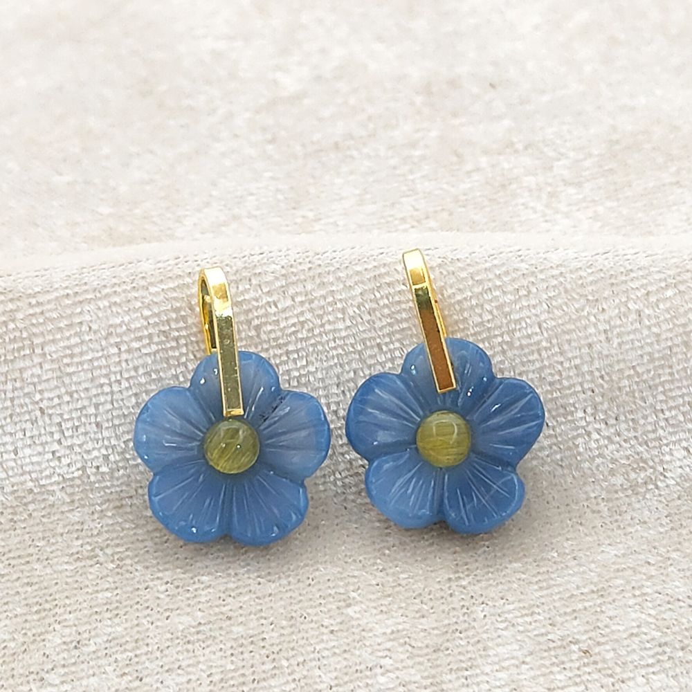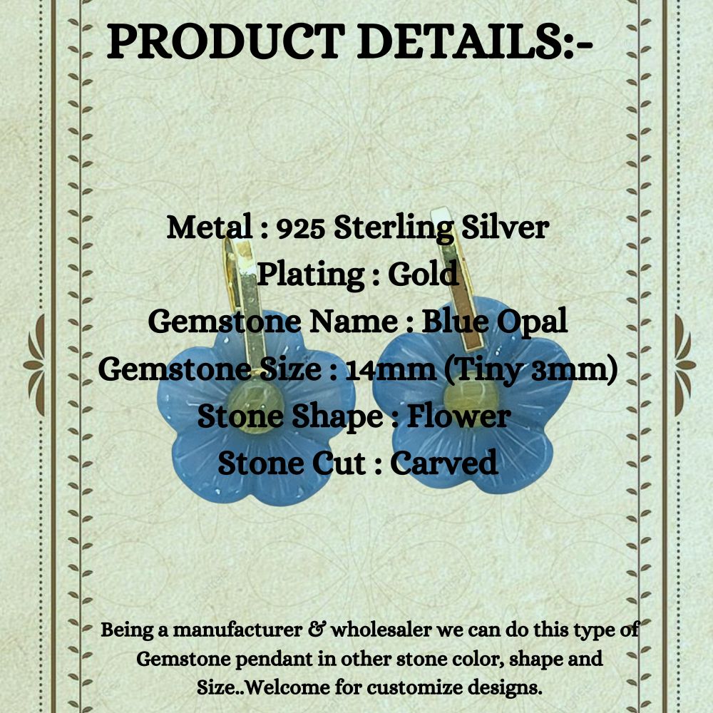 Gold Plated Sterling Silver Blue Opal Carved Flower Pendant Handmade Gemstone Jewelry Charm- Selling Per Piece