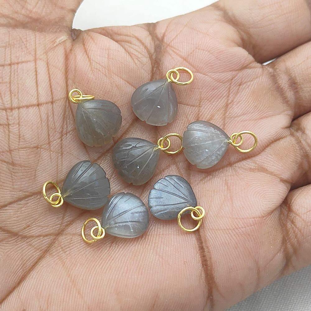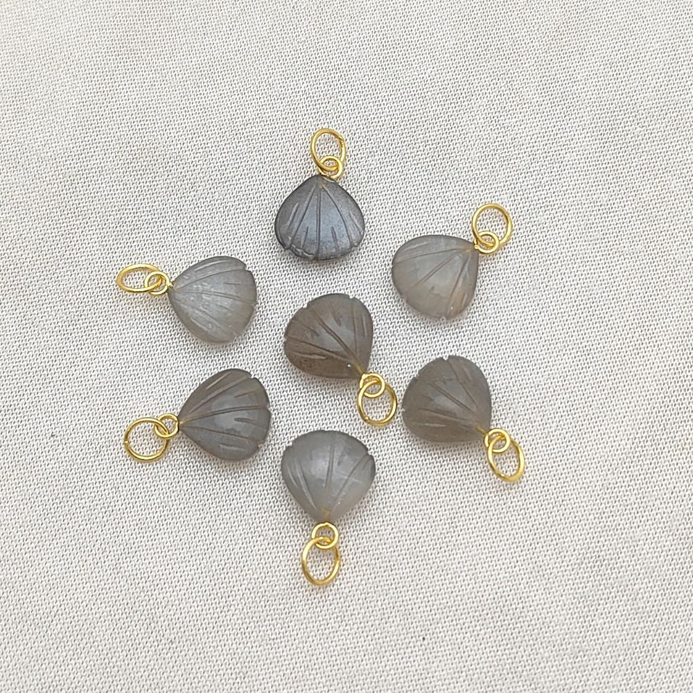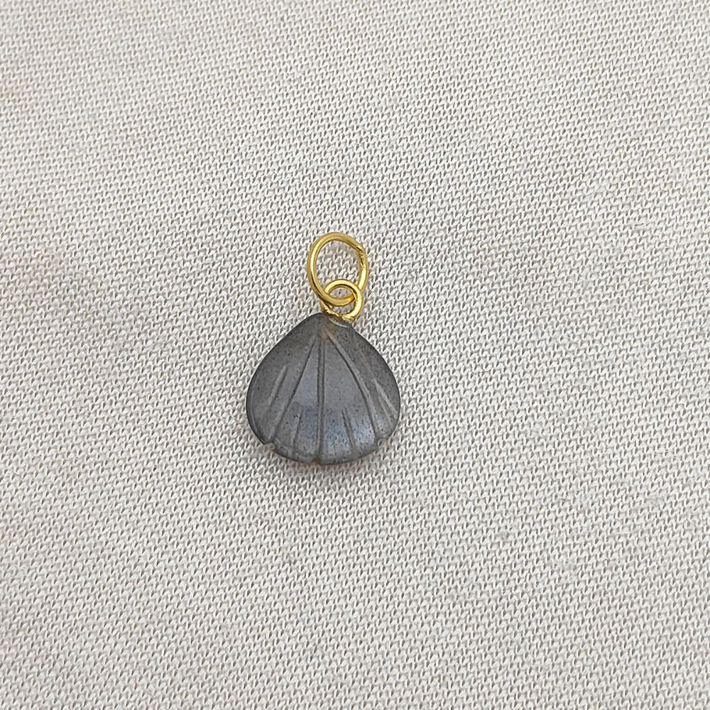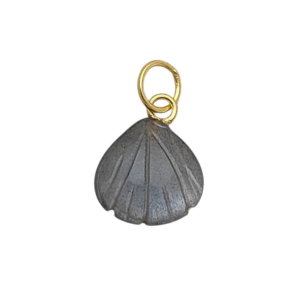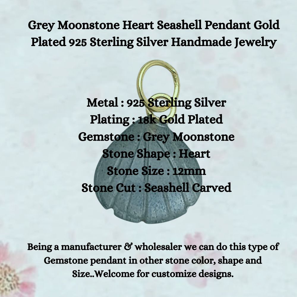 Gold Plated Sterling Silver Grey Moonstone Seashell Pendant Natural Gemstone Jewelry
