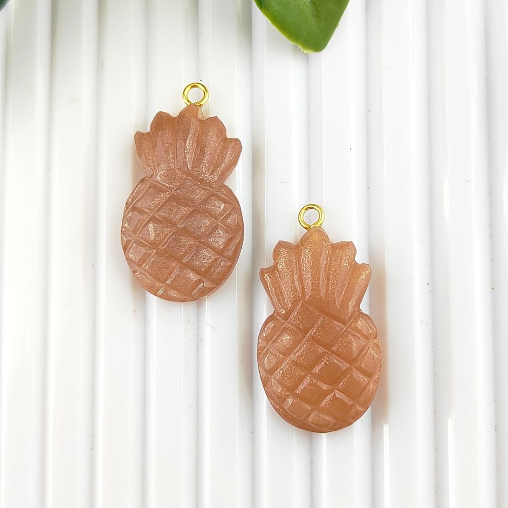 Gold Plated Sterling Silver Peach Moonstone Pendant Carved Pineapple Gemstone Charm for Women’s Handmade Jewelry- Selling Per Piece