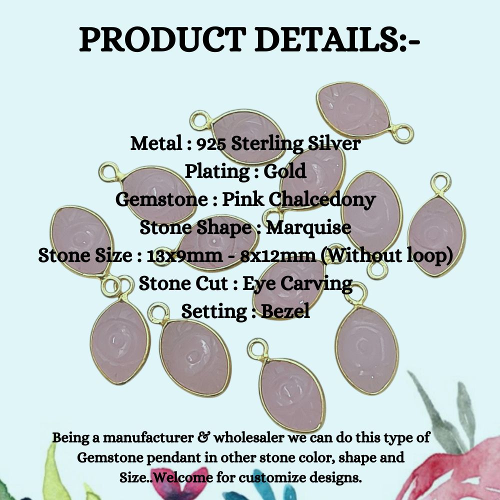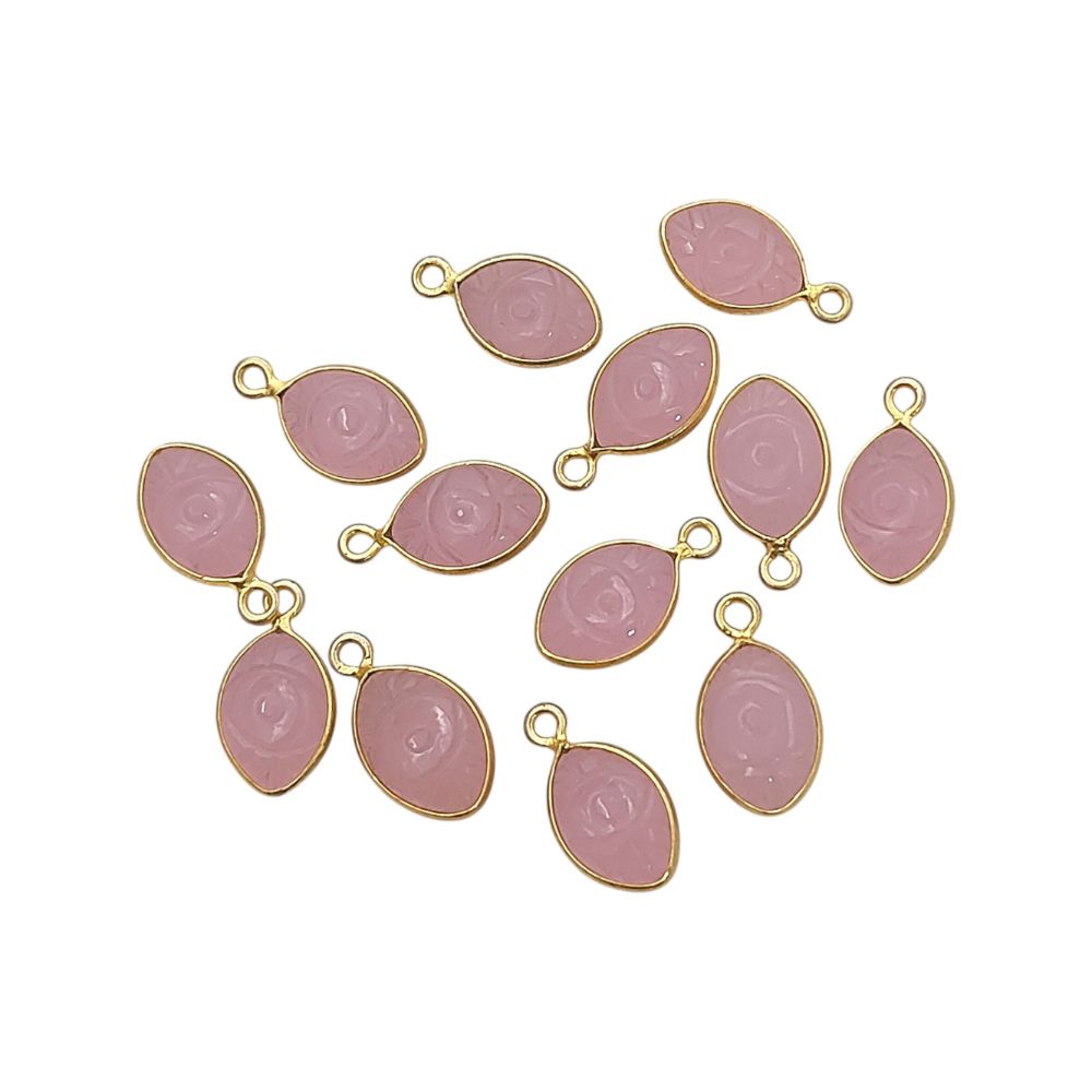 Gold Plated Sterling Silver Pink Chalcedony Evil Eye Pendant Handmade Crystal Jewelry Charm- Selling Per Piece