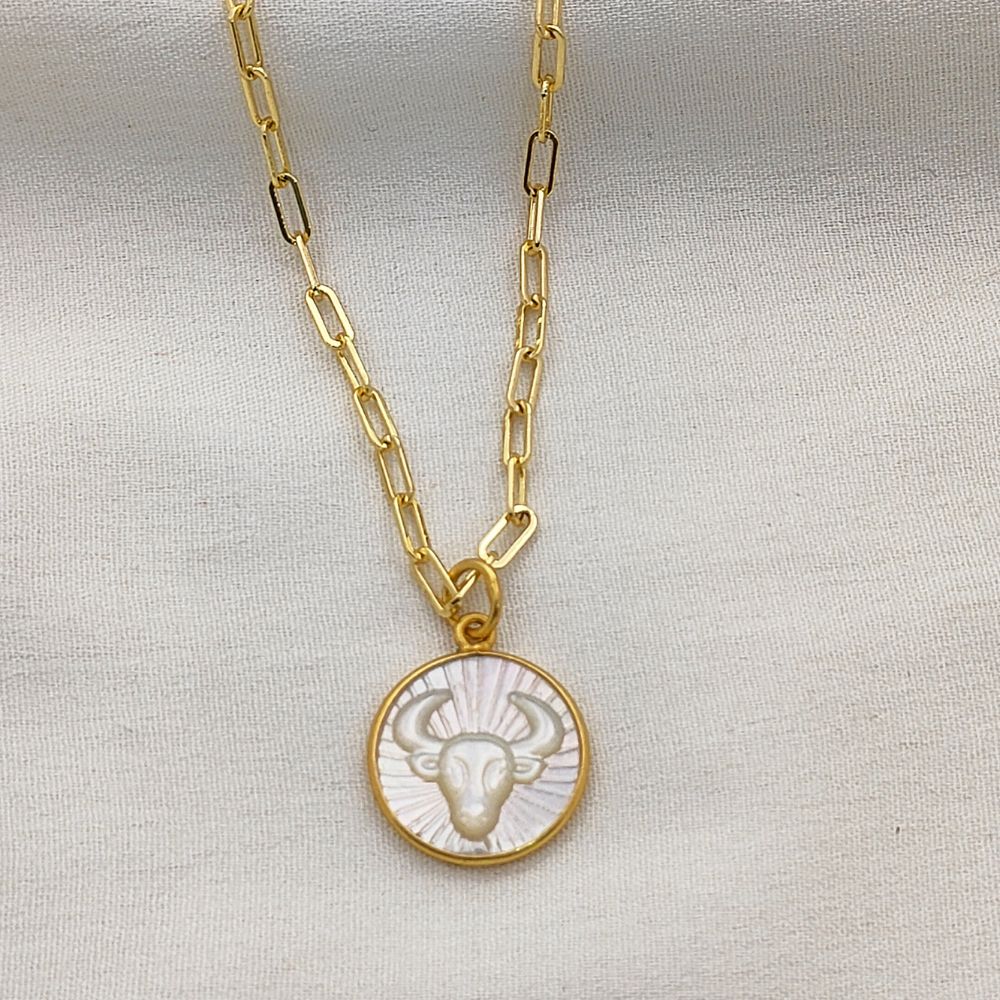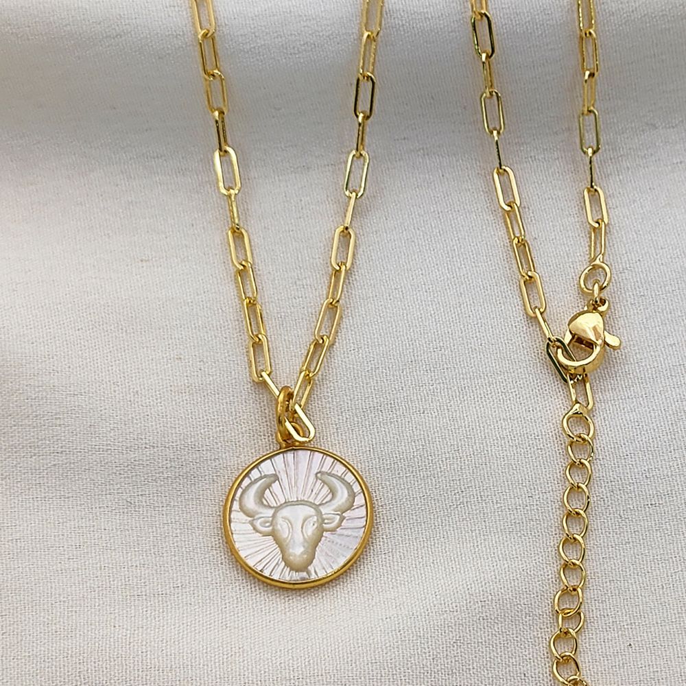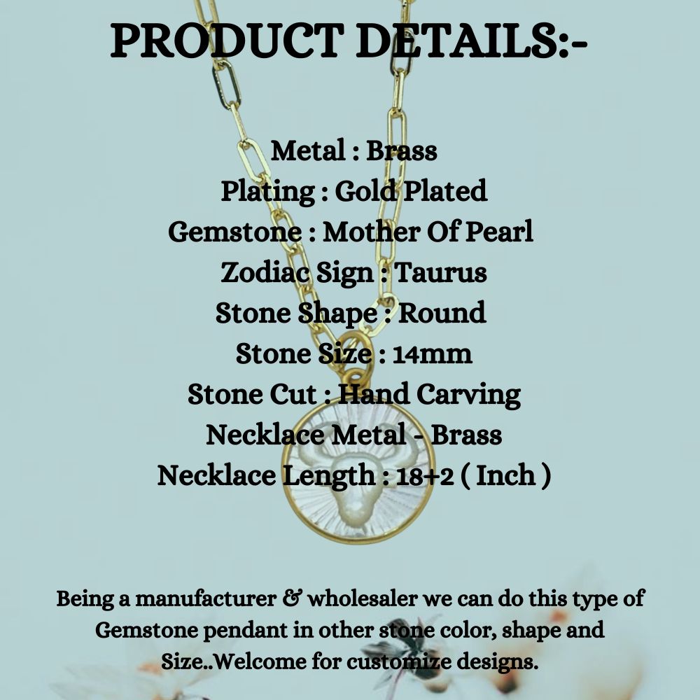 Gold Plated Taurus Horoscope Necklace with Mother of Pearl Pendant Stylish Astrology Jewelry Gift for Her- Selling Per Piece