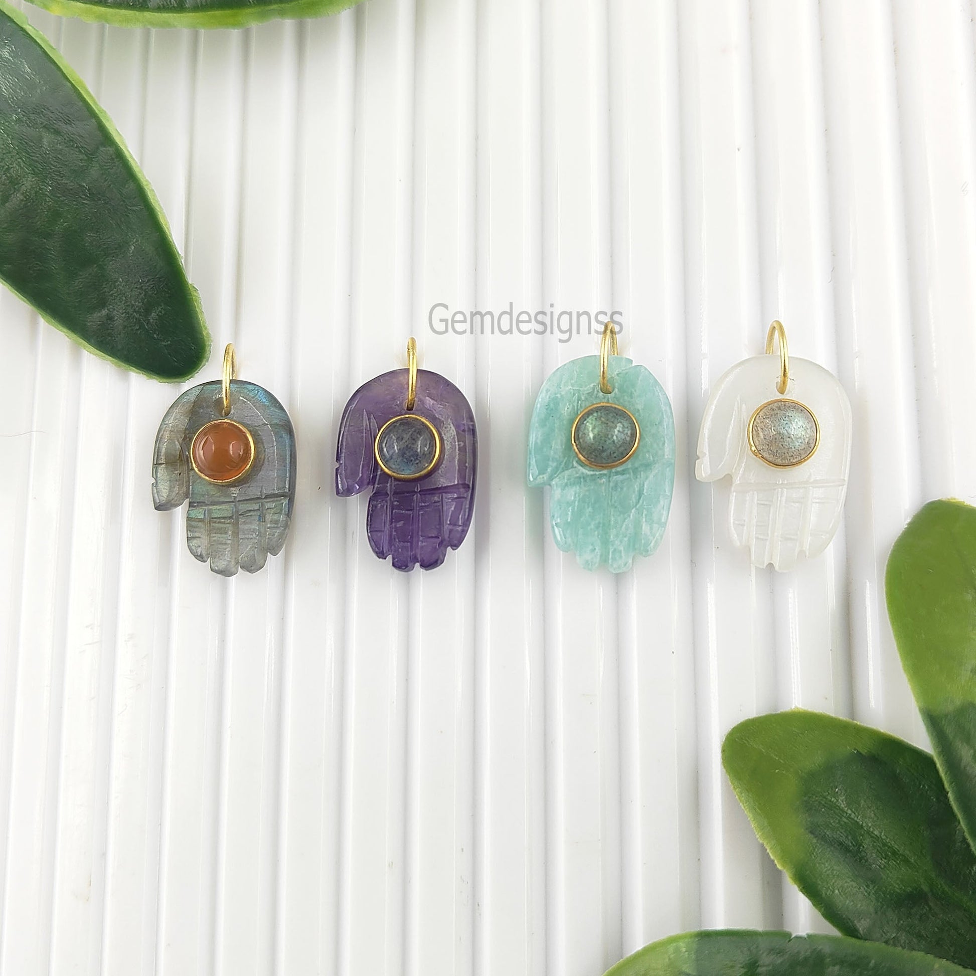 Gold Vermeil Hamsa Hand Pendant with Healing Gemstone Spiritual Jewelry Gift For Her- Selling Per Piece
