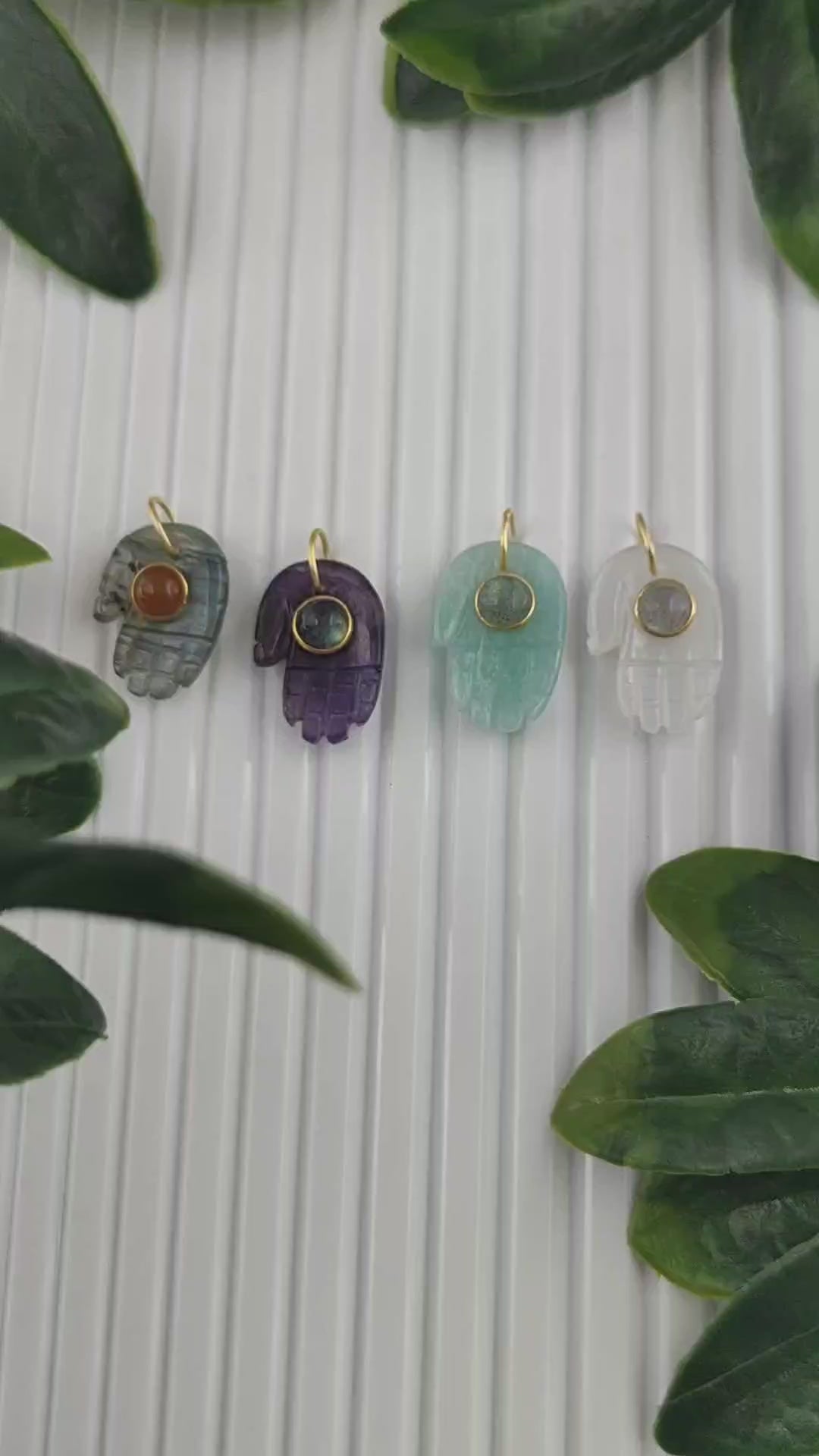 Embrace the protective energy of the Hamsa Hand with our exquisite pendant, crafted from gold vermeil and adorned with a beautiful healing gemstone. This pendant serves as a powerful symbol of strength, good luck, and spiritual protection, making it a meaningful accessory for daily wear or special occasions.