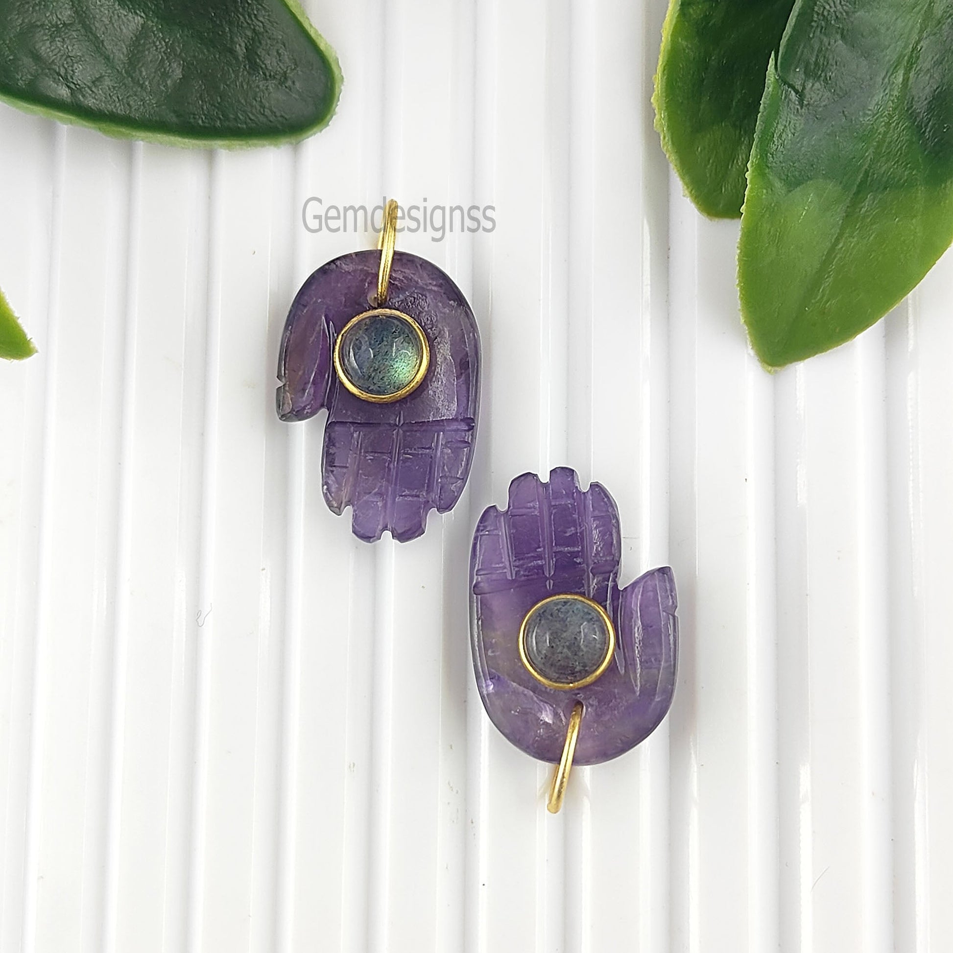 Embrace the protective energy of the Hamsa Hand with our exquisite pendant, crafted from gold vermeil and adorned with a beautiful healing gemstone. This pendant serves as a powerful symbol of strength, good luck, and spiritual protection, making it a meaningful accessory for daily wear or special occasions.