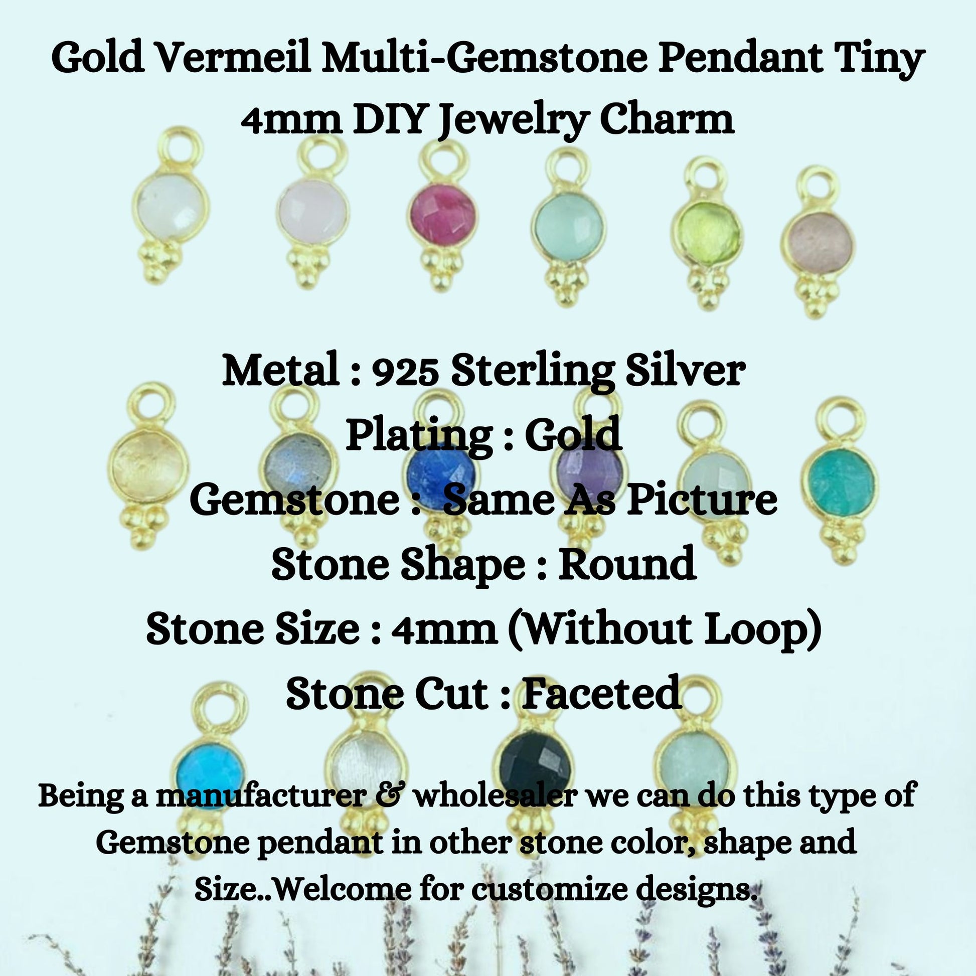 Gold Vermeil Multi-Gemstone Pendant Tiny 4mm DIY Jewelry Charm