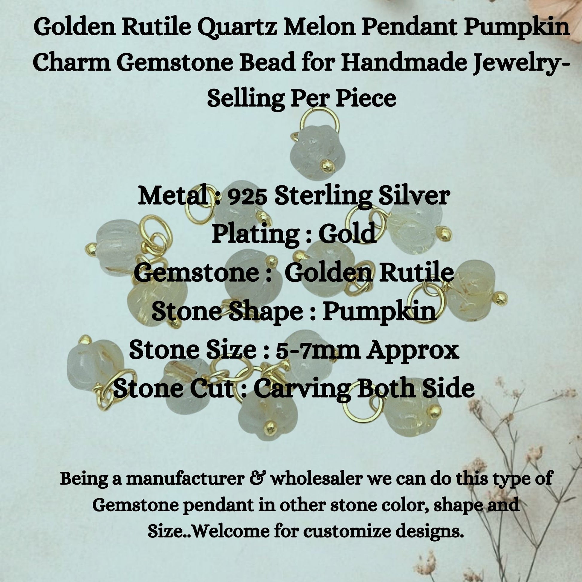 Golden Rutile Quartz Melon Pendant Pumpkin Charm Gemstone Bead for Handmade Jewelry- Selling Per Piece