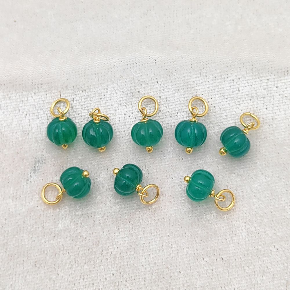 Elevate your jewelry creations with the vibrant and soothing beauty of Green Onyx, meticulously carved into a charming pumpkin shape and set in luxurious gold plated 925 sterling silver. This melon-shaped bead offers both rich color and symbolic meaning, perfect for DIY artisans seeking unique, meaningful components.