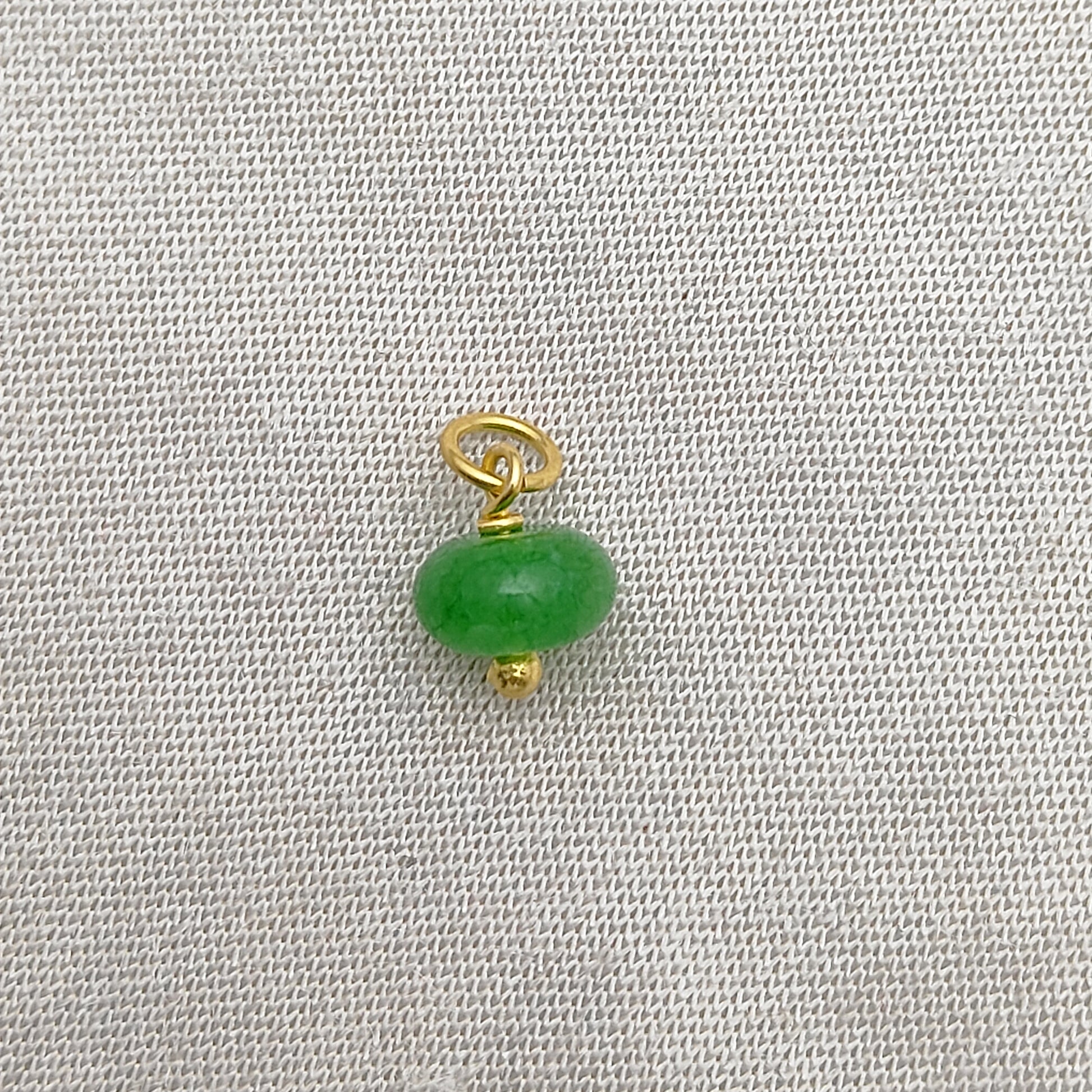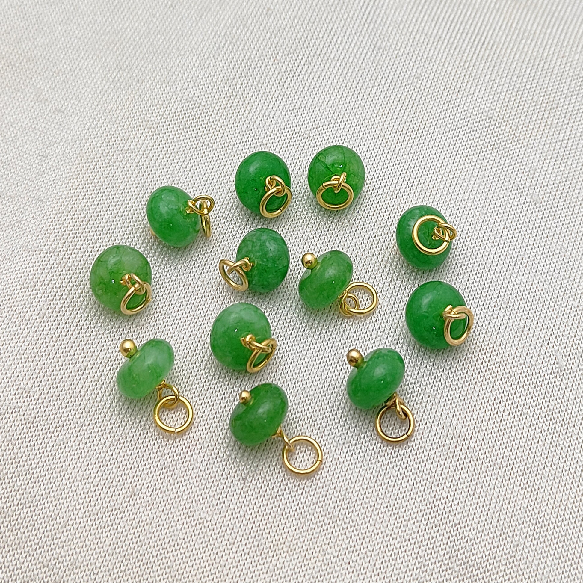 Enhance your jewelry designs with this 8mm Green Strawberry Quartz Roundel Charm, crafted with a gold-plated sterling silver setting. This elegant gemstone bead is perfect for DIY earrings, charm bracelets, and layering necklaces, adding a touch of nature-inspired beauty to any handmade piece.