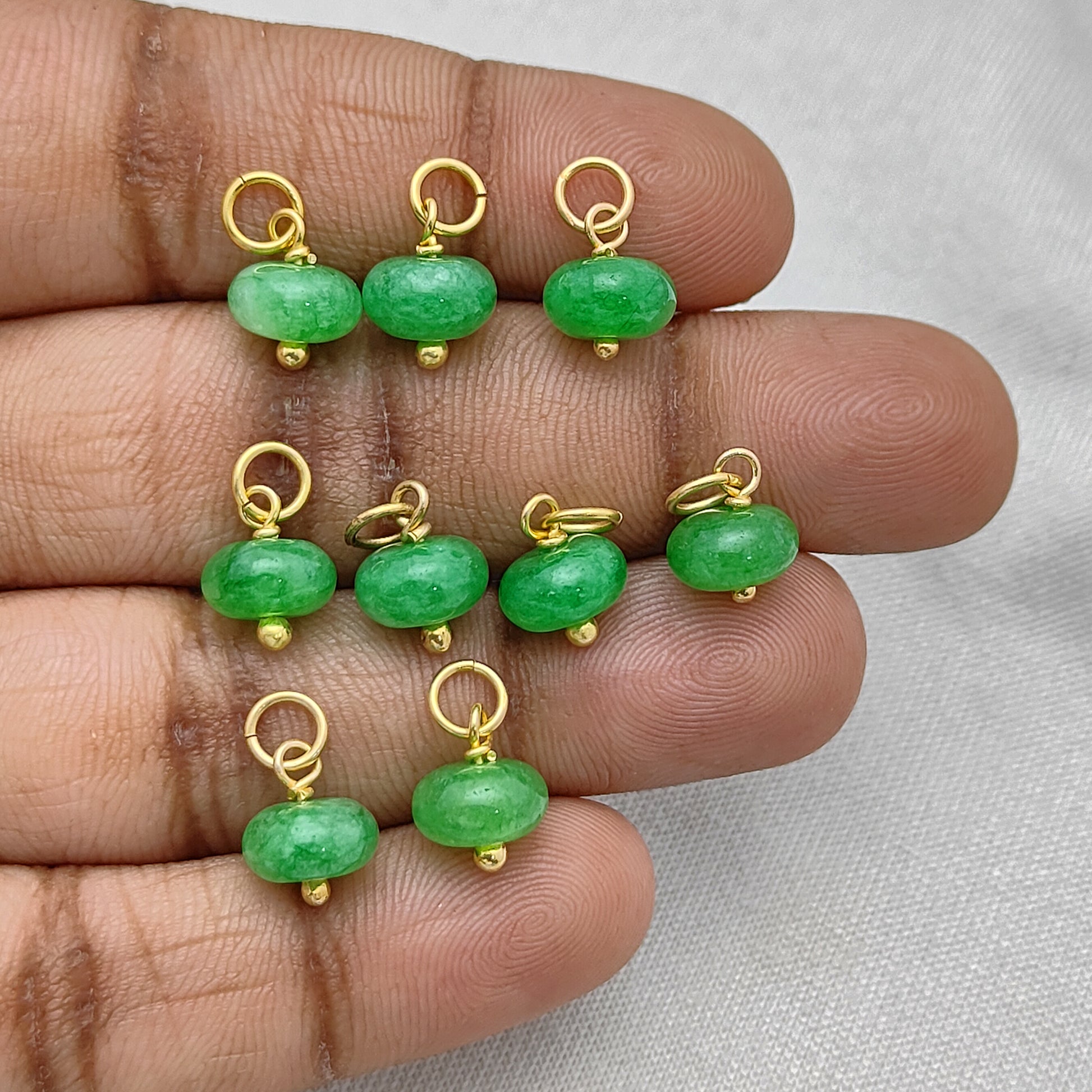 Green Strawberry Quartz Roundel Charm 8mm Gold Plated Sterling Silver Gemstone Bead for Jewelry Making- Selling Per Piece