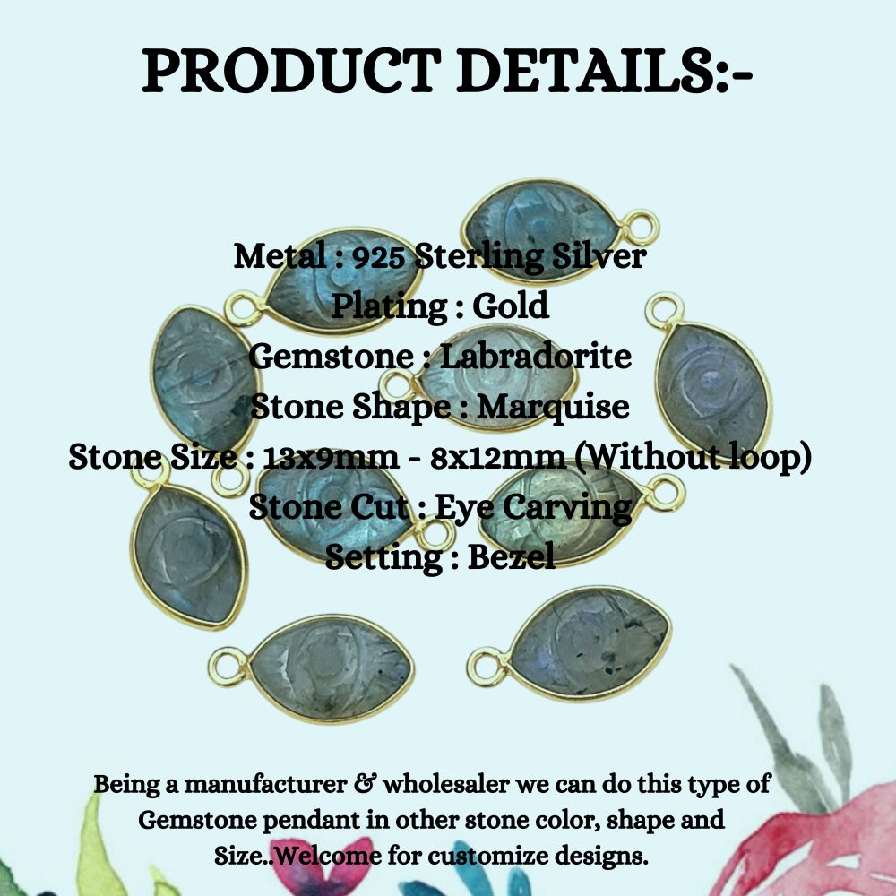 Hand-Carved Labradorite Evil Eye Pendant for Necklace in Gold Plated Sterling Silver Spiritual Gemstone Jewelry- Selling Per Piece