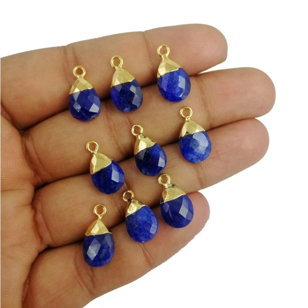 Handcrafted 13x9mm Blue Sapphire Teardrop Pendant Pear Cut Gemstone Charm with Gold Electroplating – Selling Per Piece