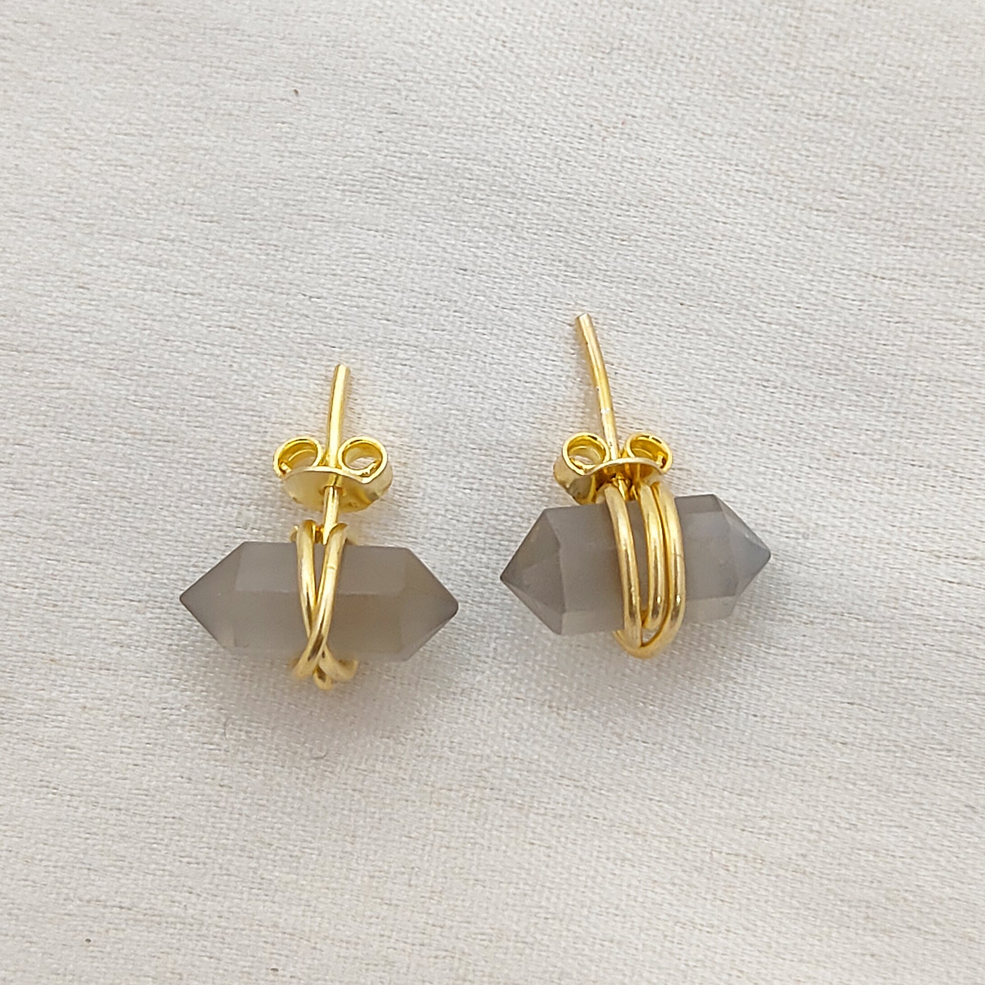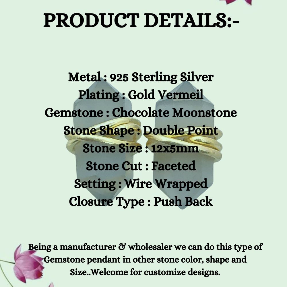 Handcrafted Chocolate Moonstone Stud Earrings, Elegant 12x5mm Gold Vermeil Gemstone Jewelry – Selling Per Pair