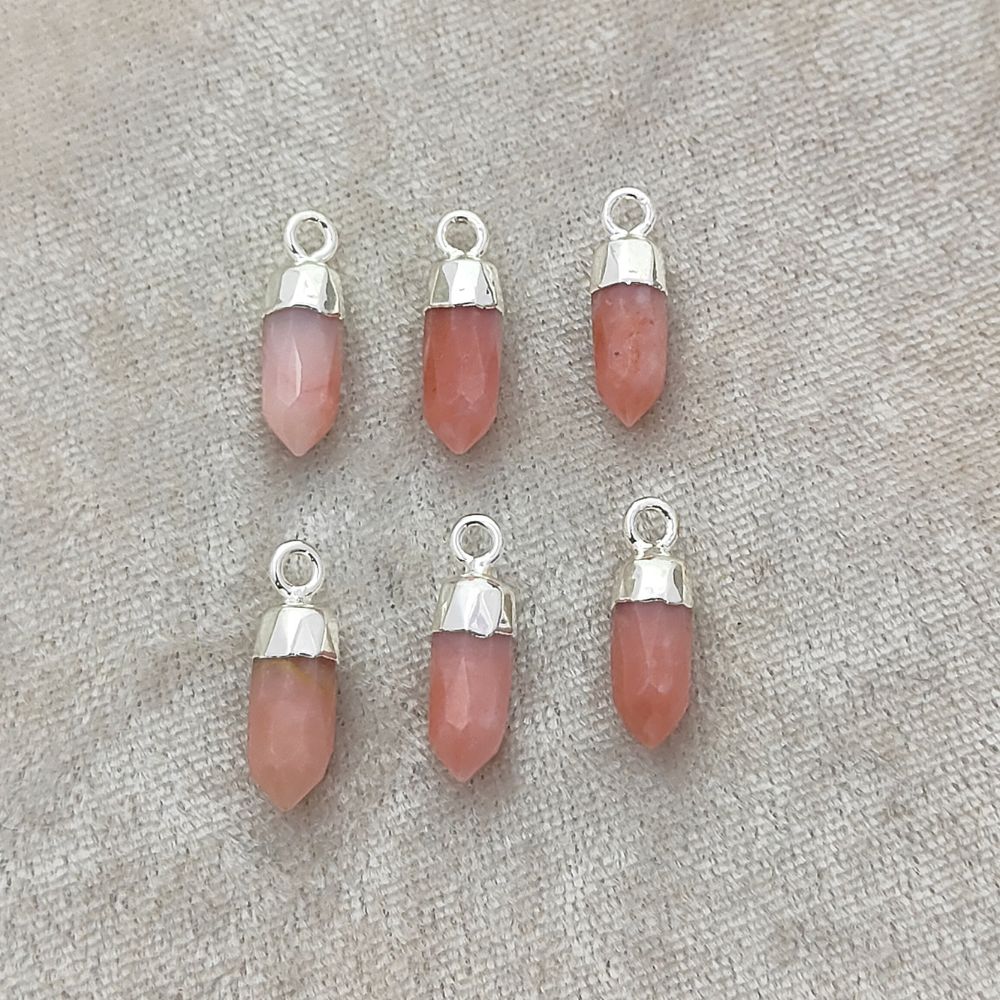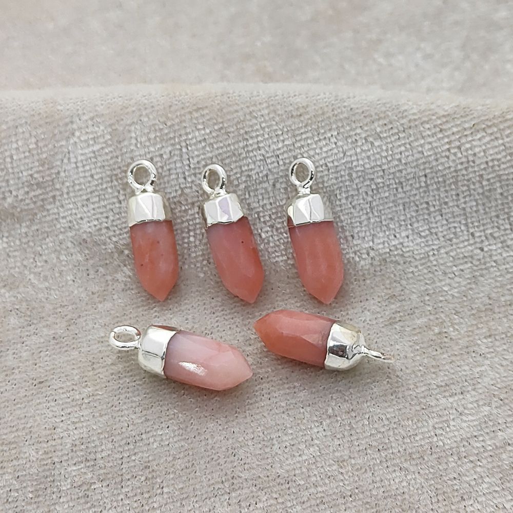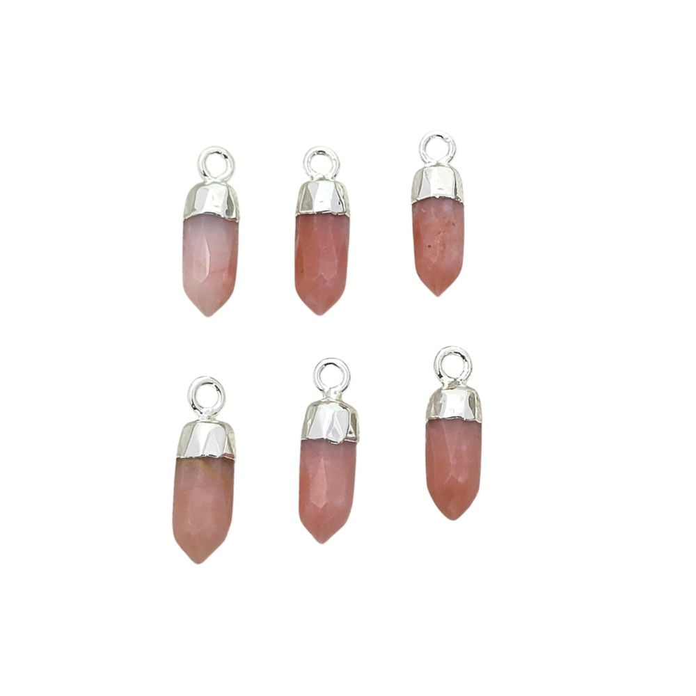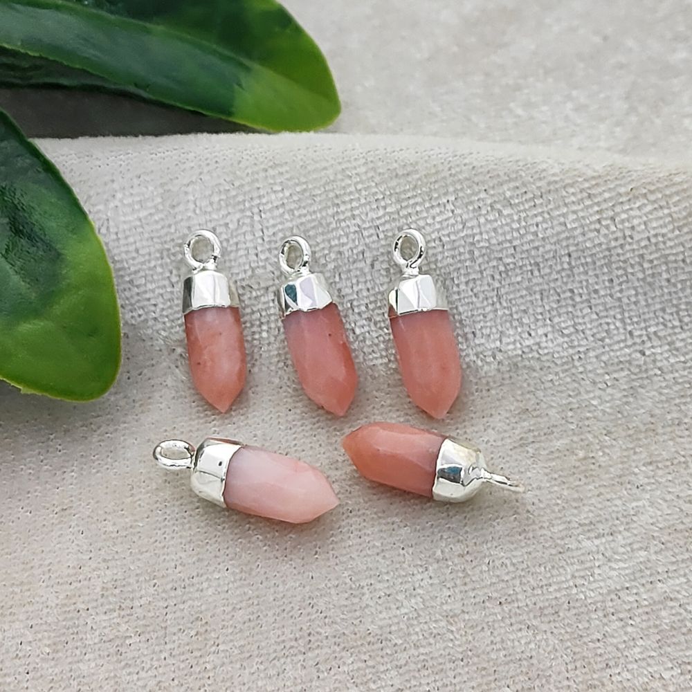 Handcrafted Pink Opal Crystal Spike Point Pendant Silver-Plated Gemstone Charm for Minimalist Necklace & Bracelet Designs – Selling Per Piece