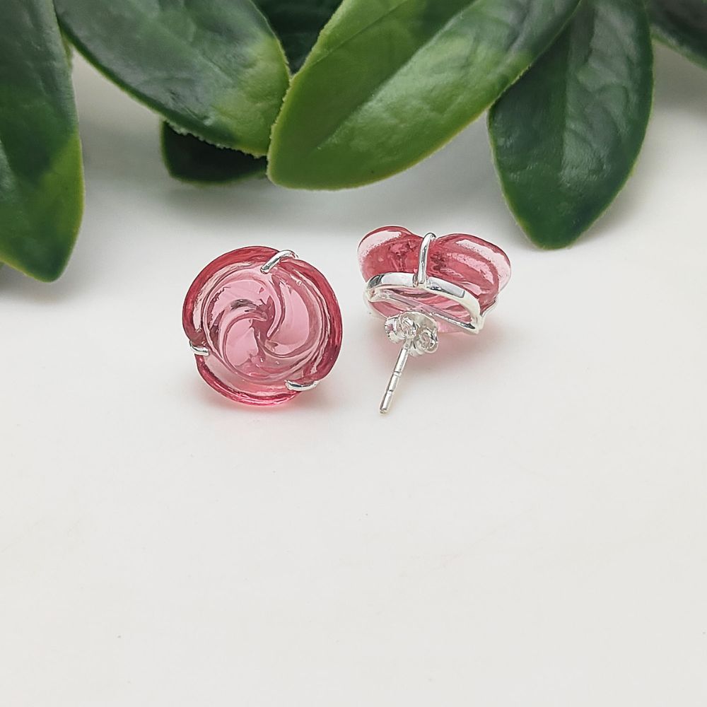 Handcrafted Pink Quartz Rose Stud Earrings in 925 Sterling Silver Delicate Floral Design Perfect Gift- Selling Per Pair