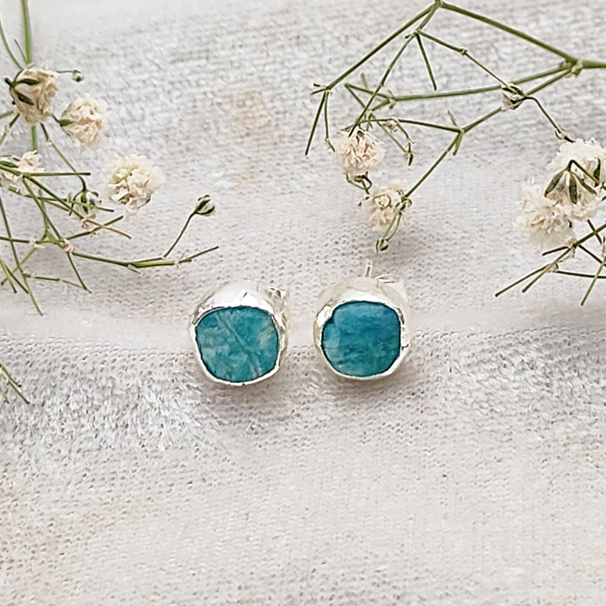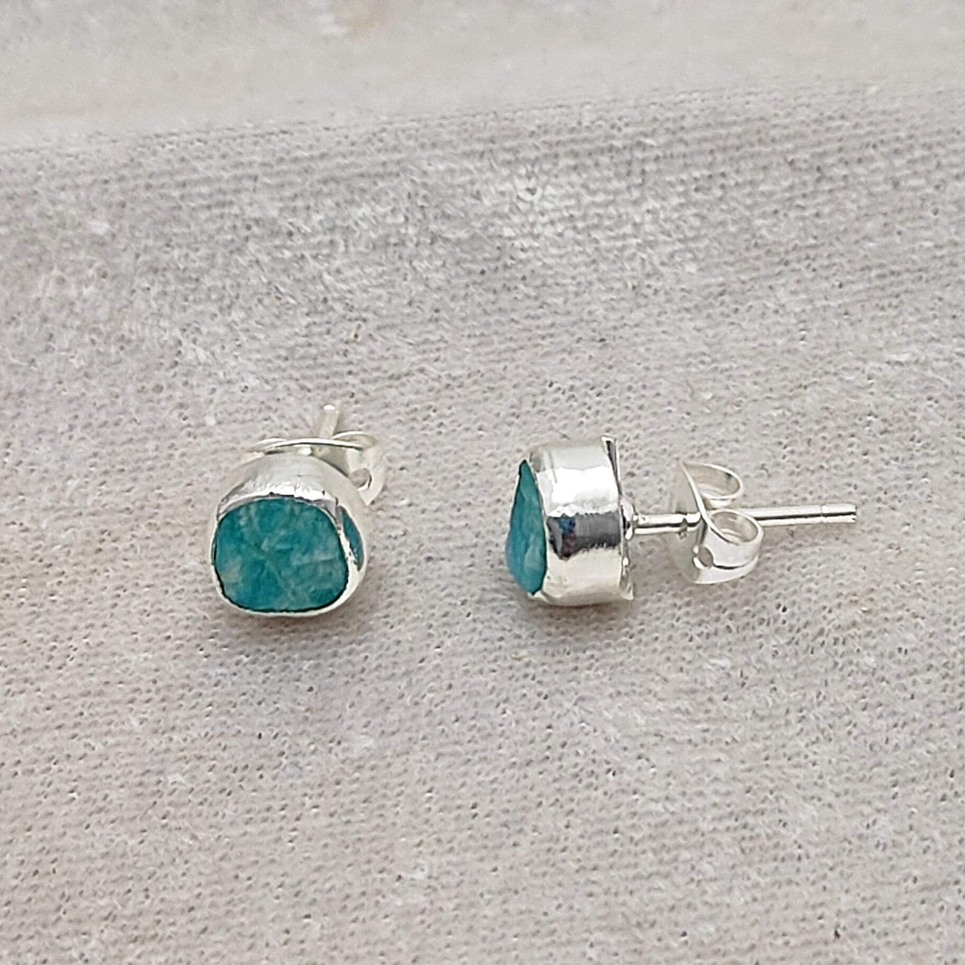 Handcrafted Raw Amazonite Stud Earrings Natural Uncut Gemstone Minimalist Jewelry for Her- Selling Per Pair