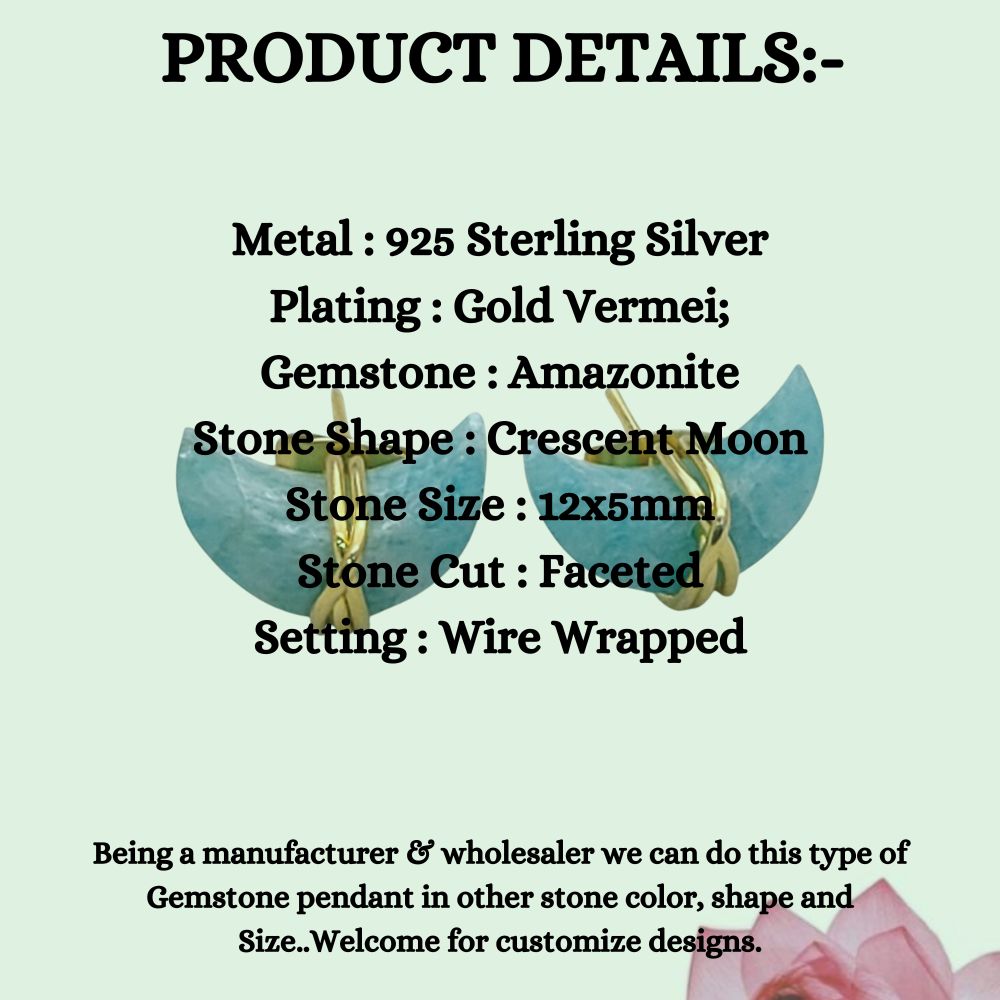 Add a soft, serene touch to your jewelry collection with these Handmade Amazonite Crescent Stud Earrings. Each earring showcases a natural Amazonite gemstone set in a dainty half moon crescent design with gold plated sterling silver, creating a delicate and elegant accessory that pairs effortlessly with any outfit.