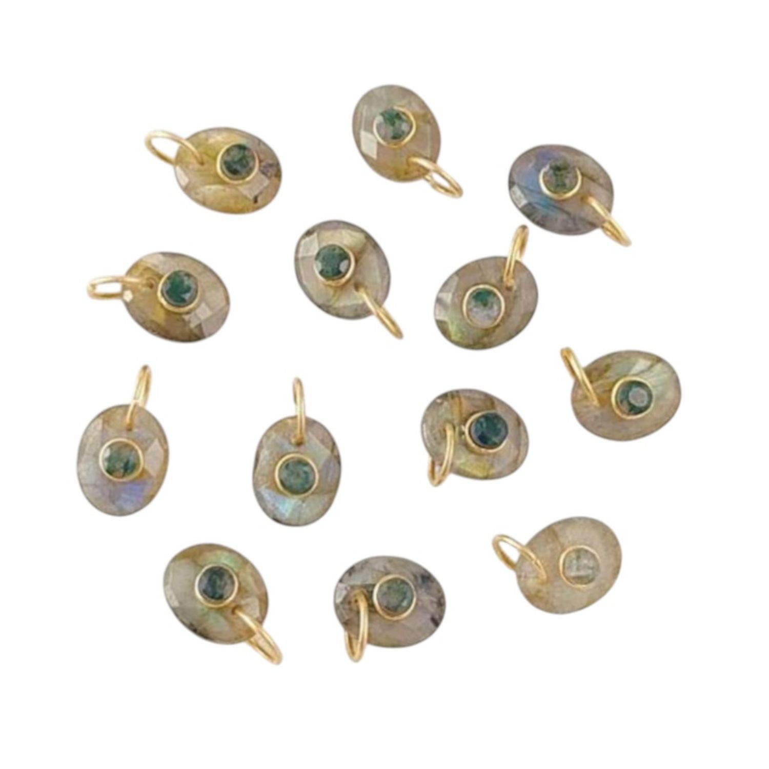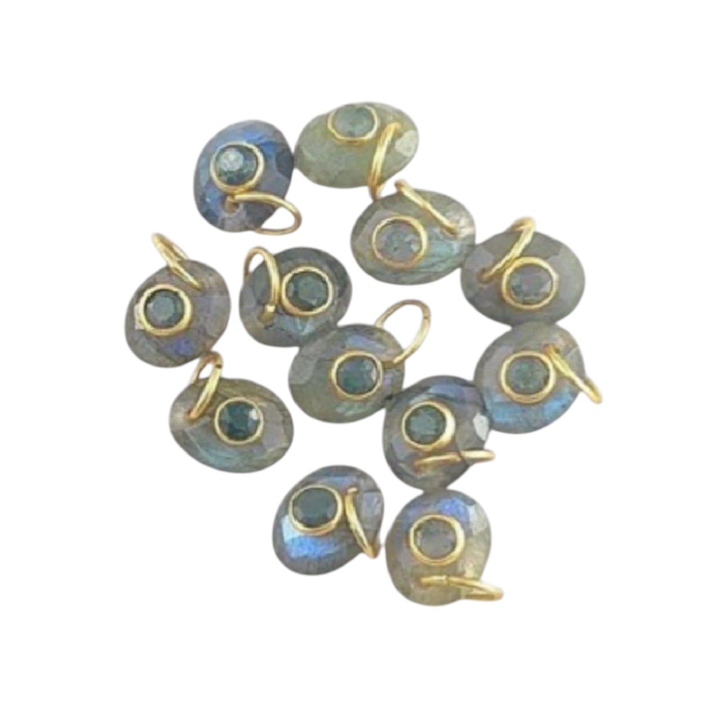 Handmade Blue Labradorite & Pyrite Pendant Gold Plated 925 Sterling Silver Gemstone Charm for DIY Jewelry Making- Selling Per Piece